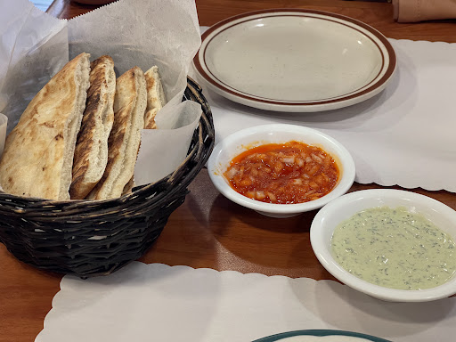 The service was very friendly. Food was very good. Price is very reasonable. Dinner came with pita, pickled veg and olives, two sauces (a spicy red onion chutney, and an herb tahini sauce).