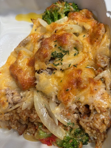 Chicken Rice Gratin: Super flavorful, tender, and juicy chicken with at least two kinds of melted cheese, onions, over a specially flavored Japanese rice. This stayed hot for 20+ minutes which is ethereal.