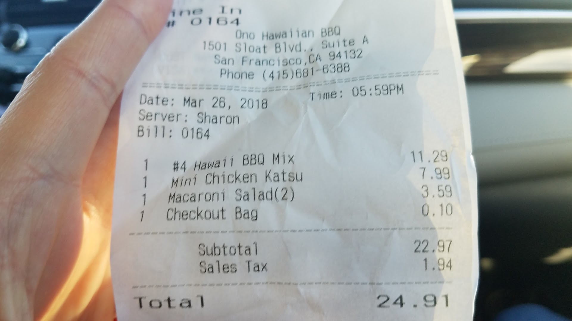 Read moreFood was cold all the way through. As an Islander, having been to several local Hawaiian restaurants, it was quite disappointing to say the least and was expecting good quality hot food. Rice was not even warm at all, katsu was so dried out and bbq beef was salty and dry as well. Customer service was just as poor as the food was. In actuality, there was nothing “ONO” about experience today. Doors were both wide open and flies inside the restaurant, completely lost my appetite!