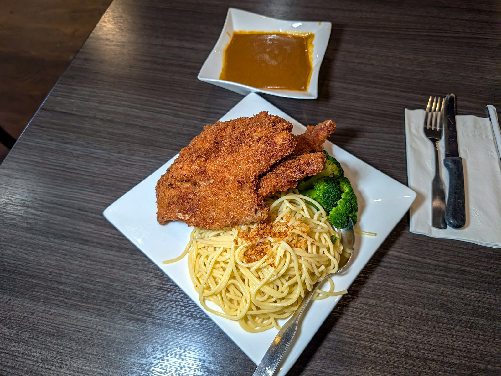 Read moreThis is my first time back to Orchids Cafe since they re-opened for indoor dining a year and a half ago. For the longest time, I saw they were only opened for take-out when I drove by. The food here is delicious with authentic HK flavors. My iced milked tea was very good. They are now added to my rotation of restaurants to eat at for lunch. (Usually I go to 21 Taste House, Chase Luck, Dots, Fate Tea House, GoGo 7, Jojo's or Pakwan.) Today, I only had 30 mins for lunch because of the loading parking meter limit and opted for the curry pork chop spaghetti instead of the longer prep time baked pork chop spaghetti (takes 20 mins.) To my surprise, pork chopS came out. On the menu, it only listed a singular "pork chop." What a pleasant surprise! That and they were huge. The chef did a great job. They put the curry on the side so that the crunchy tonkatsu don't get soft. The breading on the pork chops were on point. Service was excellent as there was only one other party dining during lunch. Great job everyone at Orchids Cafe. I felt at home with the soft Cantonese music playing in...