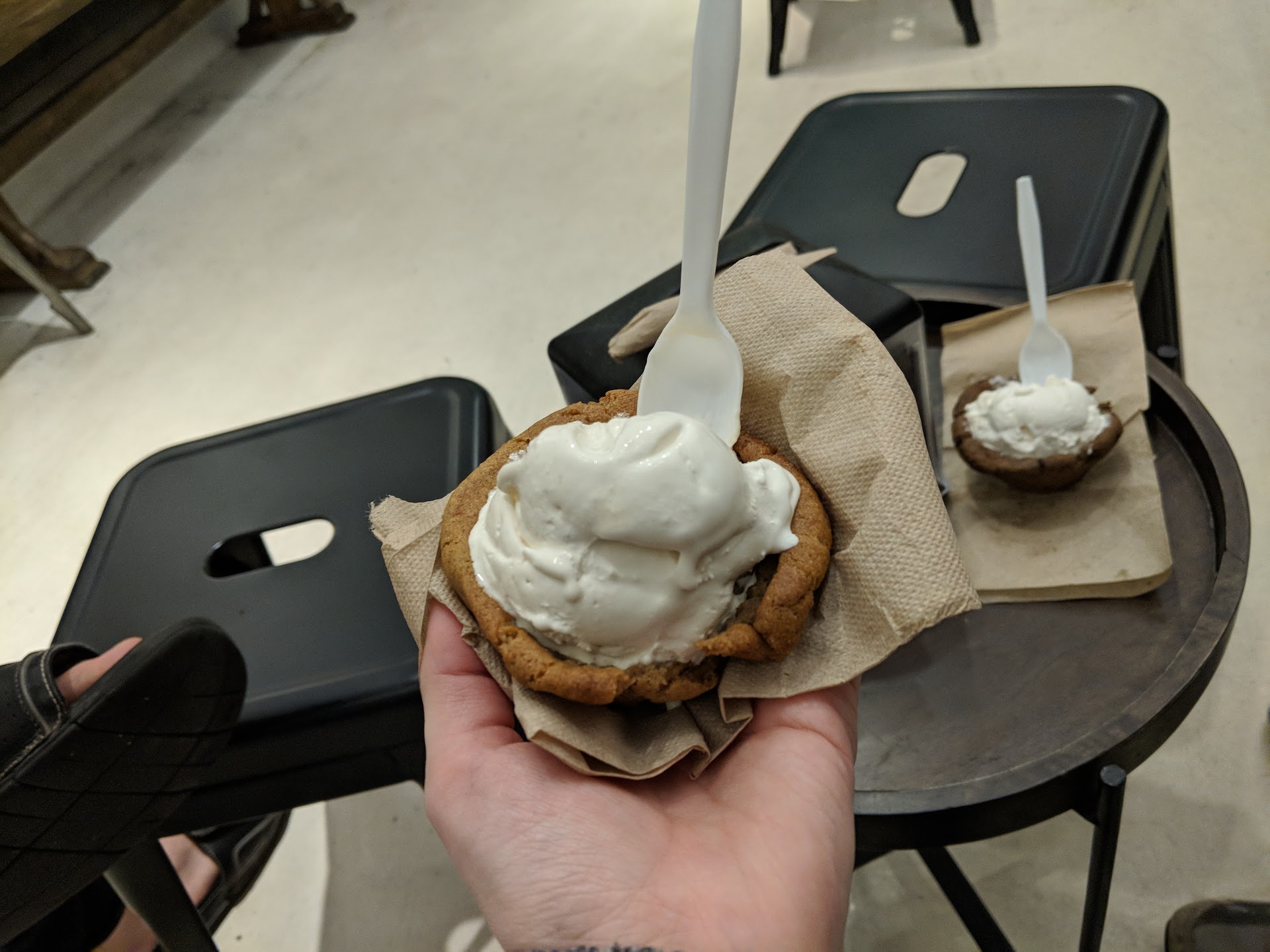 Their ice cream alone can't stand up to the likes of Humphry and Mr & Mrs, but was definitely tastier than that of CREAM. Their cookies, on the other hand, were quite tasty on their own, though a little inconsistent in texture: the chocolate chip was nice and soft, while the double fudge was harder. Whether this was due to higher demand and thus, faster turnover for the former, or just a matter of how the cookies are made, I'm uncertain.