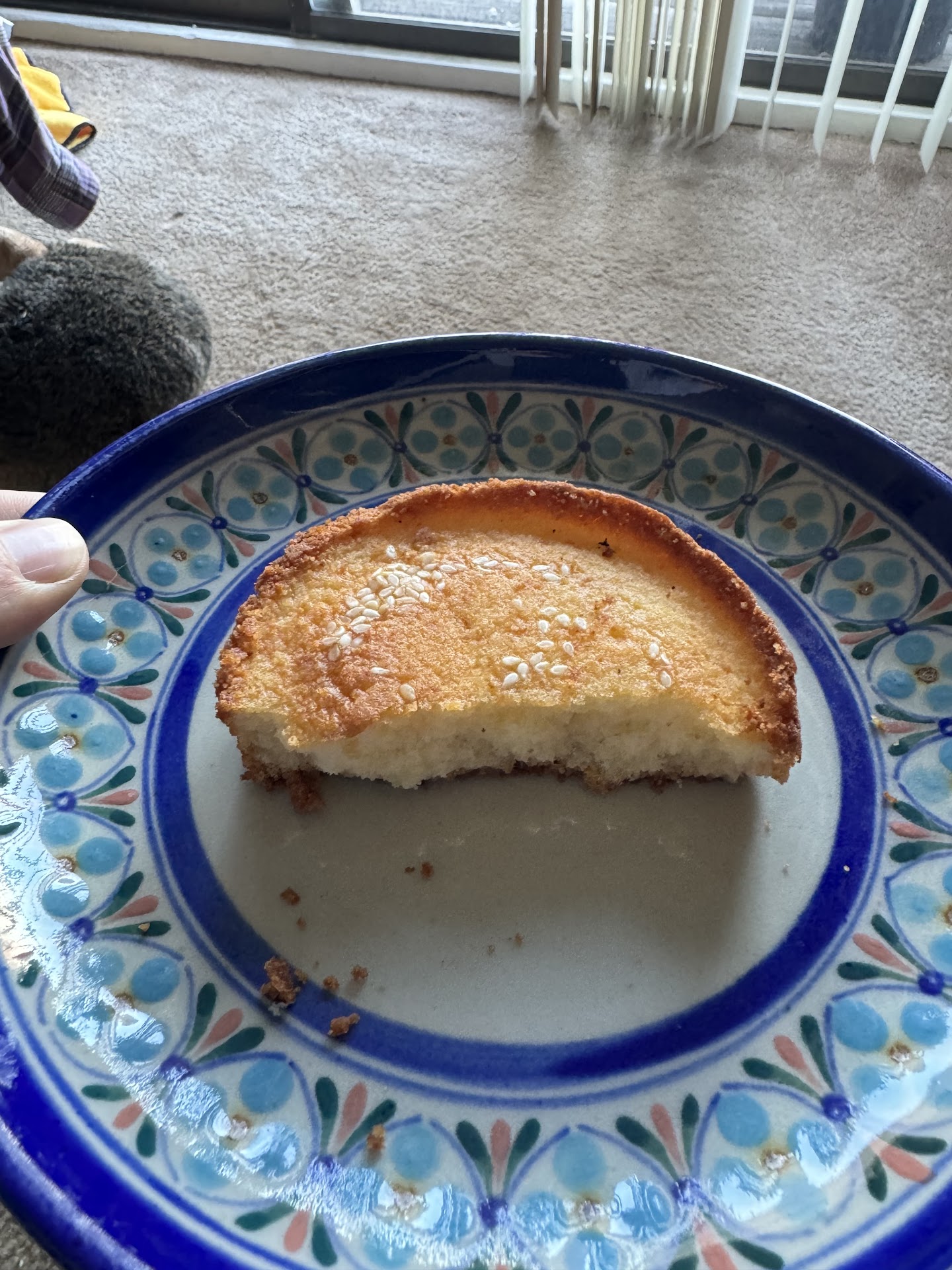So, why this in particular? I spent my summers in El Salvador as a child, and quesadilla salvadoreña was, by far, my favorite pastry from my time there. The ones that Pacitas make aren't bad by any means, with a good mix of savory and sweet, but a little on the dry side. Tossing them onto a non-stick skillet for a few minutes does wonders, giving it a slightly nicer toast, but also moistening up the slice a bit with the steam from the cheese.