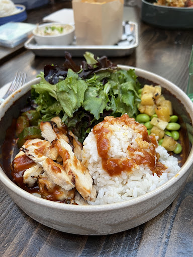 So we ordered off the regular menu. I got the Luau Bowl with teriyaki chicken. It was okay. The teriyaki sauce was more on the sweet side, which is fine, and on the thicker side. Chicken was a little dry. The edamame and pineapple didnāt have much flavor. I enjoyed the salad. I did eat almost the entire plate as I was hungry.