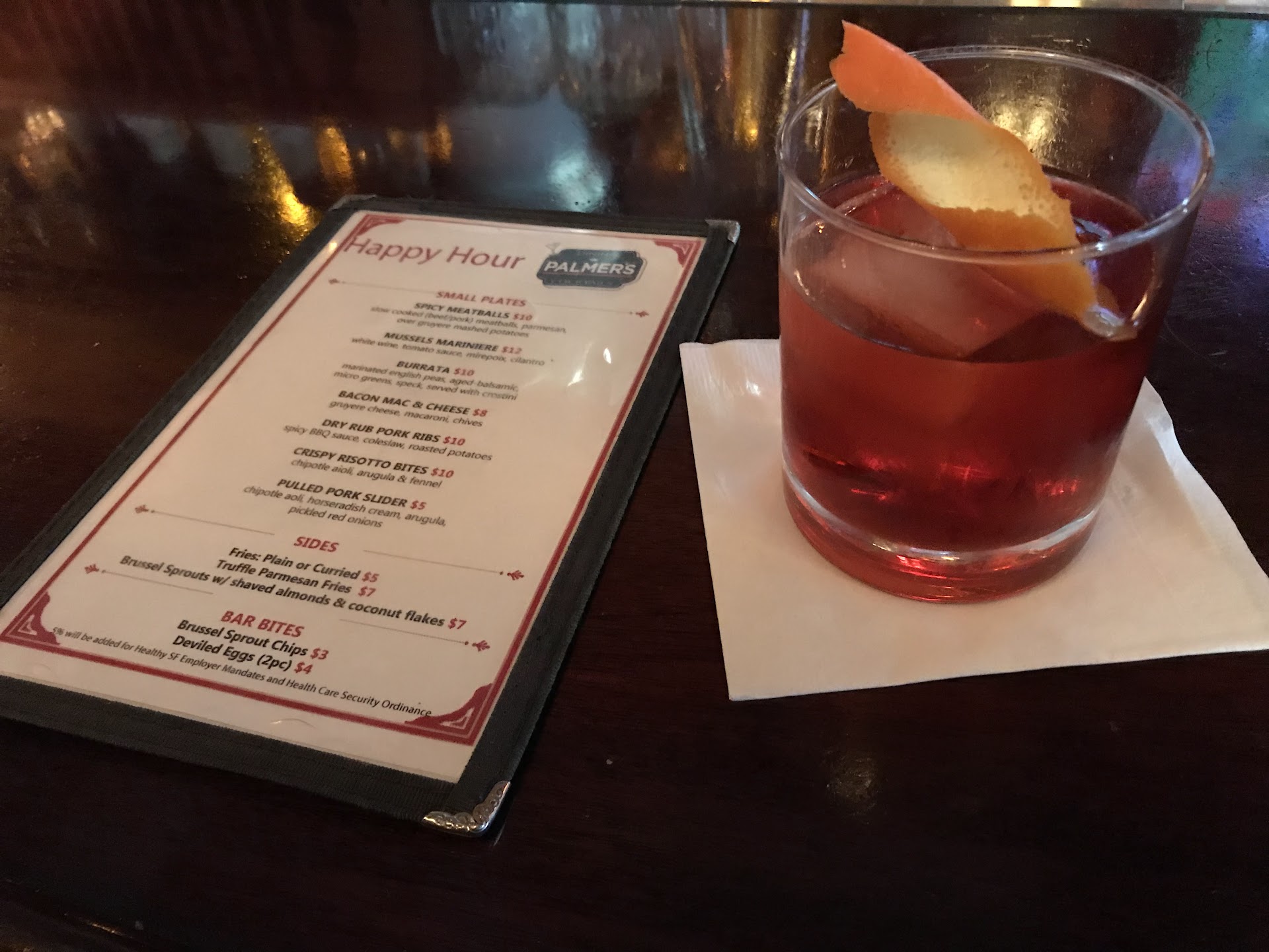 Read moreGreat retro neighborhood bar and restaurant in the Fillmore. Definitely a hipster scene with an extensive cocktail menu. Love the old school vibe with shiny red "leather" banquette booths, dark wood paneling and floors, long wooden bar (hooks under the bar for purses) with stuffed animal heads looking down. We experienced Palmer's Brunch menu and ordered their Brunch Burger with yummy curry seasoned fries and Salmon Benedict. The burger is a great value for $13! The highly addictive crunchy coated fries reminded me of eating an Indian Samosa. The hamburger was cooked to perfection (rare - the way I like it!) with a fried gooey egg, applewood smoked bacon, slices of ripe avocados on a soft tasty brioche bun. The pricey Salmon Benedict was pretty to look at, but unfortunately only 4 small, thinly slivers of smoked salmon and very little hash browns. Tasted good, but not worth the $16 price. Service was...