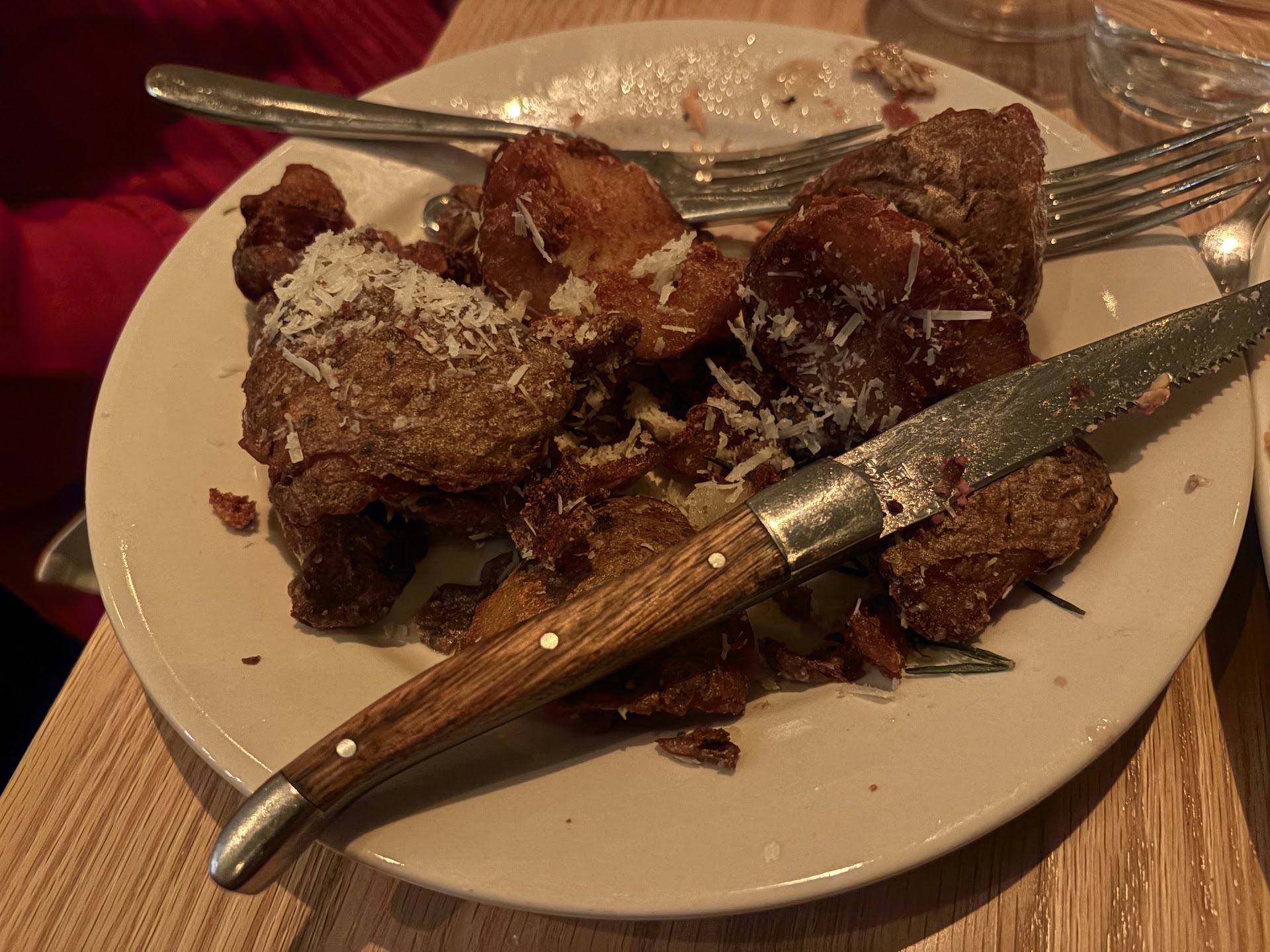 What a bummer! Having been longtime PT fans we were very excited for the reopening- we’ve been missing our favourite neighbourhood haunt! The remodel is gorgeous, crowd very chic. Host was fabulous and seated us right away. Once we were seated things went completely sideways. After 15 minutes no one had greeted us, given us water, or taken our drink orders. The disorganisation was wild- groups of waiters lingering behind us yet simultaneously rushing around super flustered. No one seemed to really know their section or the table numbers by the way they were acting. We finally flagged the host down to ask for service, he got a waiter who was clearly not happy to serve us and we ordered drinks and some appetizers. I will give them that the apps came out super fast. The Burrata and prosciutto were fine but completely unseasoned Burrata, sort of weird. Sourdough bread was ok, tiny portion for the price and burnt on top but we were trying to be positive. The charred little gem lettuce was ok. By the time we finished our apps, still no drinks. We were left in no man’s land again for far too long, finally our waiter arrived and saw we still had no drinks and rushed off to investigate. When he brought the drinks he zipped off again before we could grab him. At this point we chatted with the manager, who is incredibly lovely, so lovely that we decided not to complain, it’s only their third week or so after all. Still no mains ordered, so once Jeff left I flagged our waiter and asked if we could please order. He did not receive it well. We ordered and after waiting another 10 min, flagged him again to order drinks. At this point all four of us are pissed off. We put in our drink orders, I had originally planned on not drinking but was driven to a martini, and waited for our mains. We got carbonara, a steak, pork schnitzel, fish, side of potatoes and bok choy. Fish arrived much later than other dishes. My carbonara was good, steak was ok, pork schnitzel was good, potatoes excellent, bok choy ok. The fish was not only way behind but was cold and raw, had to be sent back. As we were eating our second round arrived. The server sent with the drinks from the bar didn’t know how to serve…. Spilled all of our drinks in our food vs rotating around the table and serving on the left as I had been taught as a server. We shared our experience with Jeff and he was gracious. The fish was comped but honestly shocked nothing else was covered or removed given how shit the experience was. 15 min without seeing a server, 30 minutes without drinks, having to ask for help four times to get service…3 painful hours on a week day. Wanted to love it, so bummed. Lovely management but everything else was awful,...