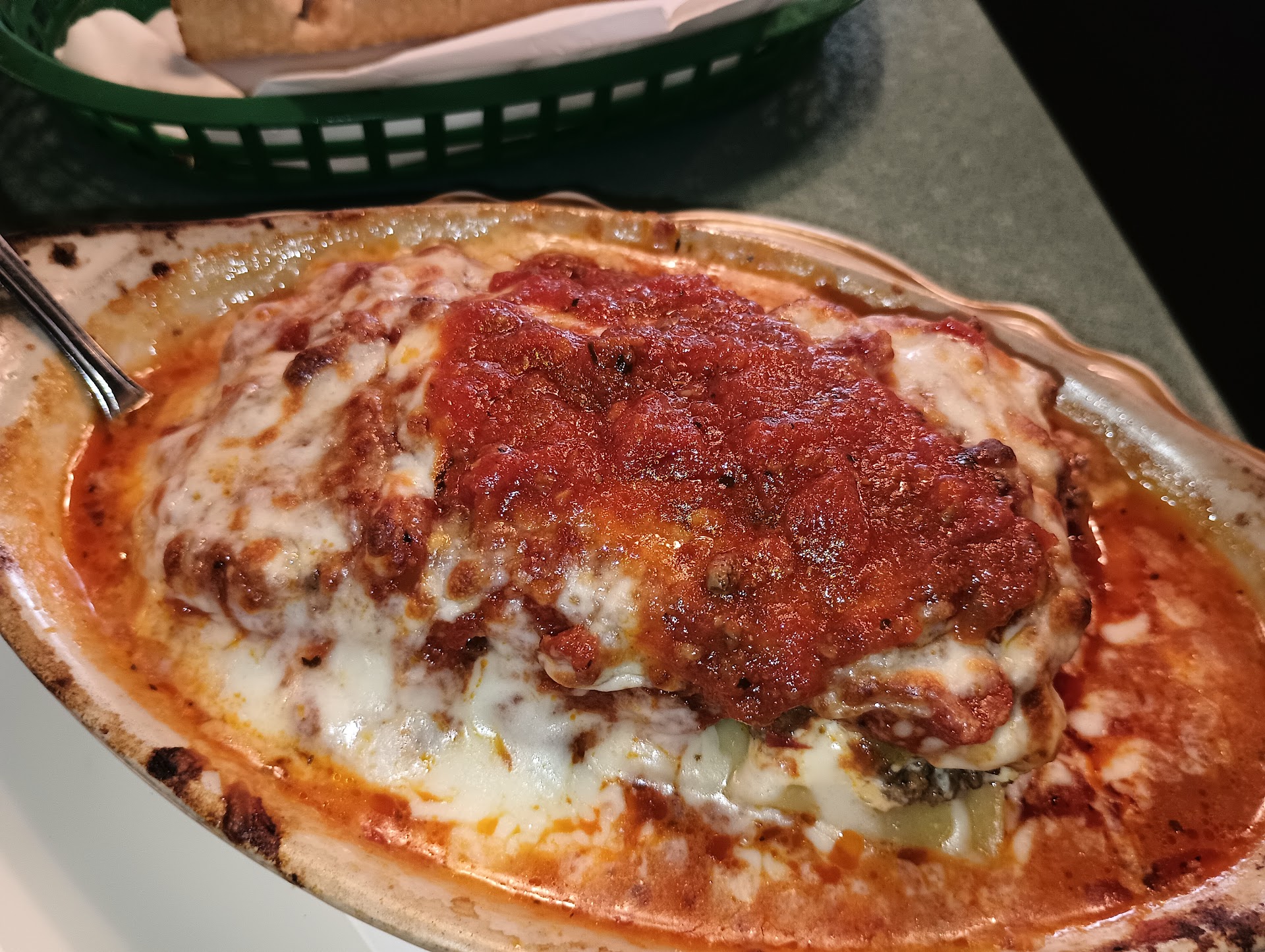 One of us ordered the meat lasagna, and they give you a huge slab of it. It was perfect according to the one who ate it. Exactly what he'd been craving all day! Another of us ordered the eggplant sandwich. According to her, it was also excellent!