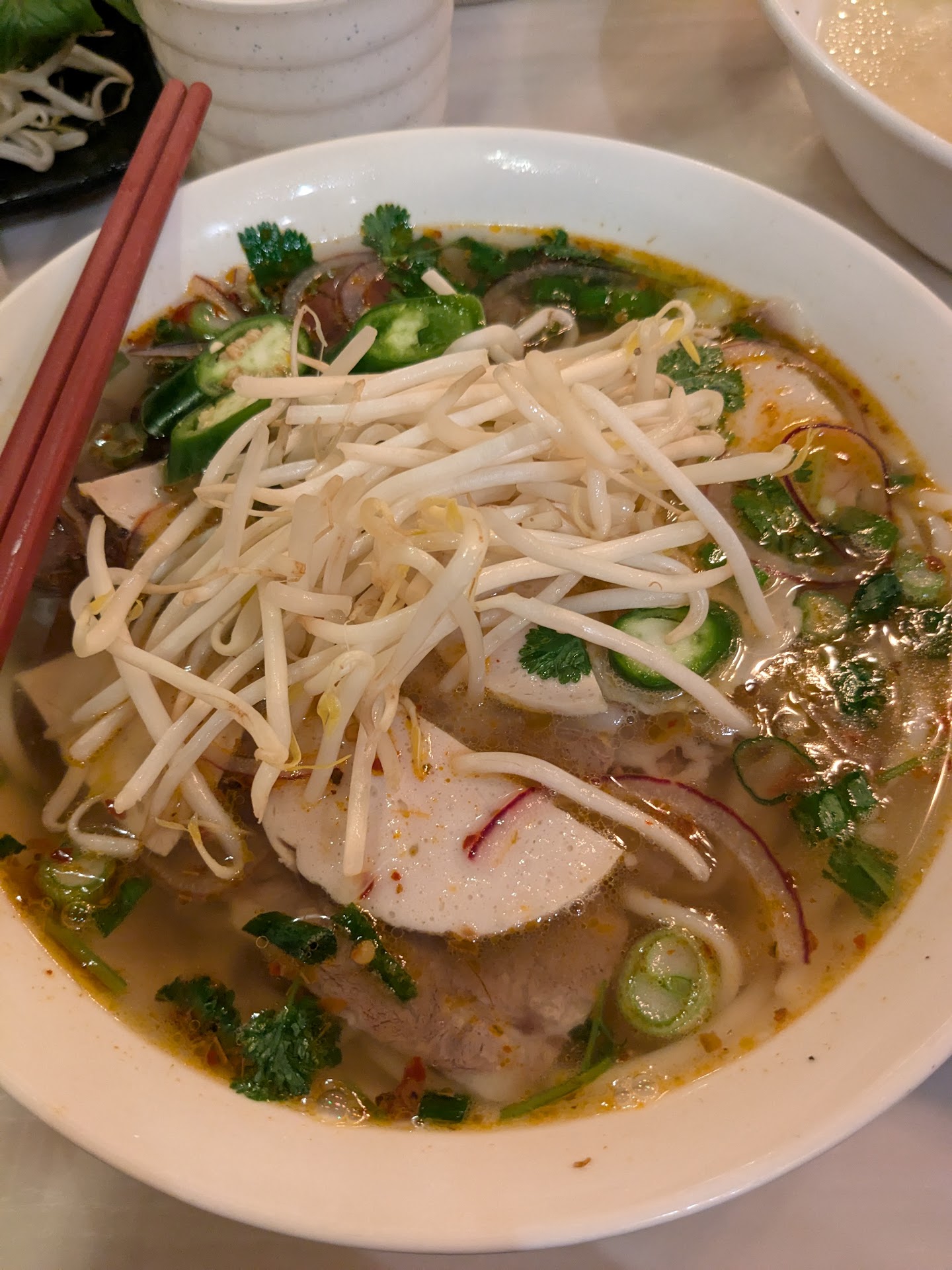 I came here with my family for a simple birthday dinner. It was my first time here and I was a bit nervous about the food, but I was pleasantly surprised how good it was! I ordered their #19, bun bo hue. I liked it, but was disappointed on how inconsistent it was in the spice level. Several of us ordered the BBH and you could tell each bowl had a different spice level from the red flakes and spicy oil amounts in each bowl. It has a good amount of blood jelly in it, so that was a plus!