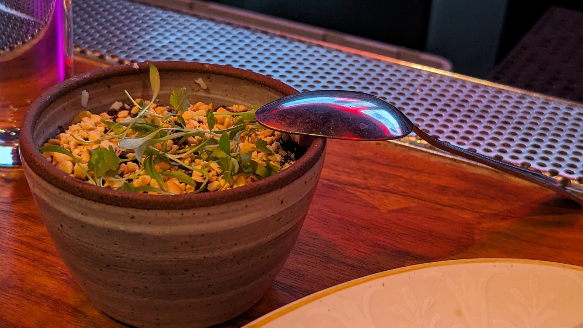 As early diners, we expected a smooth culinary journey. Yet, our experience took a turn as another couple, a classmate from culinary school with the chef from several years ago, arrived 15 minutes after us. Their camaraderie translated into a flurry of dishes promptly served to them, while our wait for the same dishes extended past the hour mark and a forgotten dish along the way.