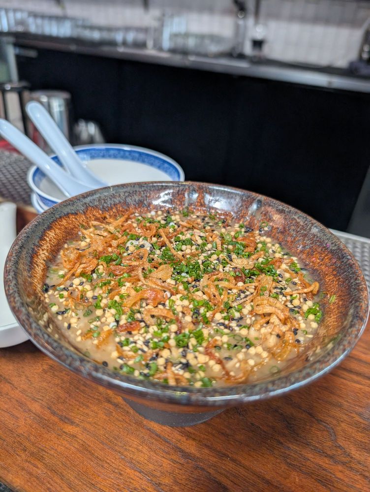 Last, but not last, the chicken rice porridge. This was probably my least favorite dish of the three that were ordered, and this really came down to the texture of the dish. I felt the "porridge" was really more of risotto and the texture was a bit too thick to be called a porridge; however, I can appreciate the flavors that went into the dish and still found it to be tasty overall.