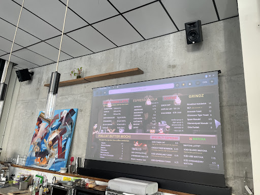 Read moreAt the counter when I asked what type of black tea they had the response I got was black. Okay fine, not great for tea drinkers. I got a regular coffee, and asked for cream. It was then filled all the way to the tip top of the cup so when I tried to pick up the cup, it spilled over and burned my hand. The Tiger cat tasted off as if the syrup had burned brown sugar instead of a carmelized brown sugar. The croissants were nothing special and they don't offer to warm up any pastries for you. The atmosphere is chill, they have a record player. This place shares a space with two other restaurants that weren't open at the time so...