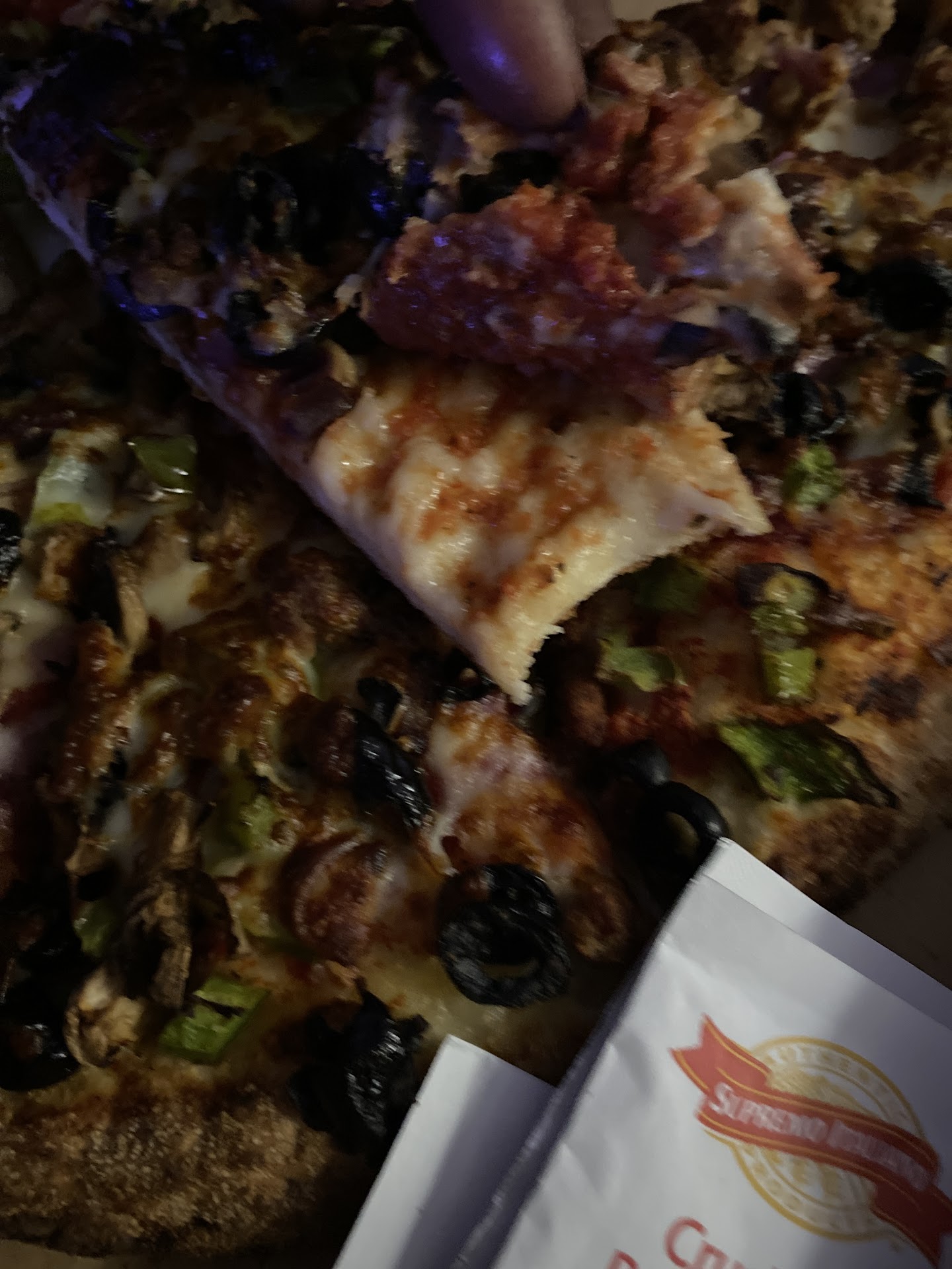 I get to my car because I canât wait to eat and my goodness were those slices huge! I felt horrible after making the comment about it being too expensive because they werenât only huge and technically four slices when I ordered two, they were delicious!! I will definitely be returning with my children for a family dinner night. Thank you for your service Pizza...