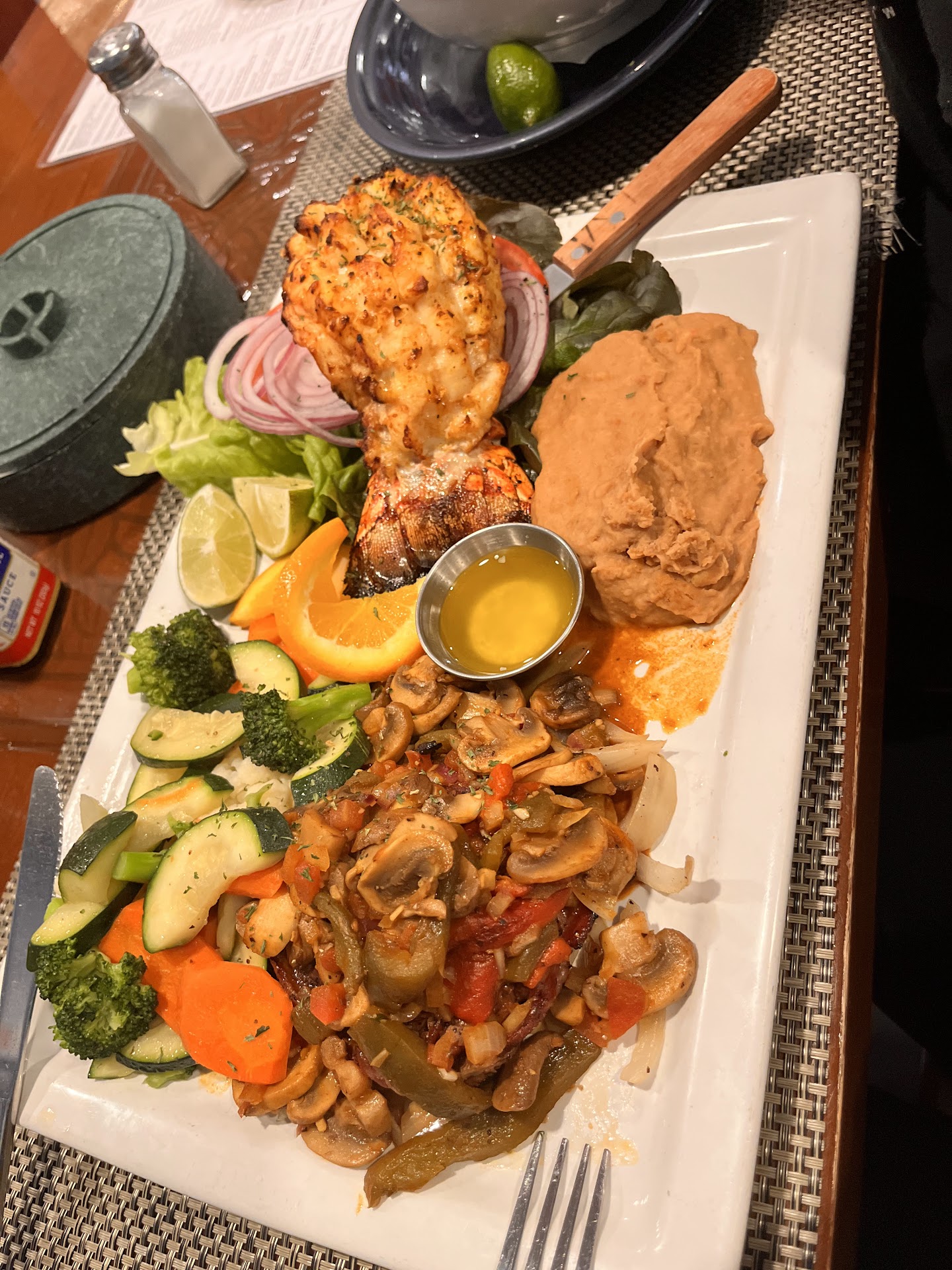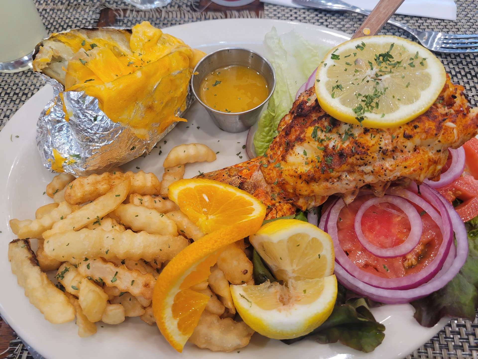 I went with my family and that included a bunch of kids , the service was quick , food was fresh and delicious we brought a huge appetite and group , family ordered alot of different plates of the menu and we passed around the goods , I was not in a mood to drink so didn't order their cute cocktails .. back to the food , I ordered lobster with fries , stuffed potato, salad ,came with their butter for the lobster, my plate was generous and filling , the lobster was tasty , the kids enjoyed their food , alot of oysters to go around , I'm not sure if it was an appetizer tortilla chips with shredded cheese ,avocado , jalapeños and topped with shrimp sprinkled with cotija cheese I believe . My family and I are...