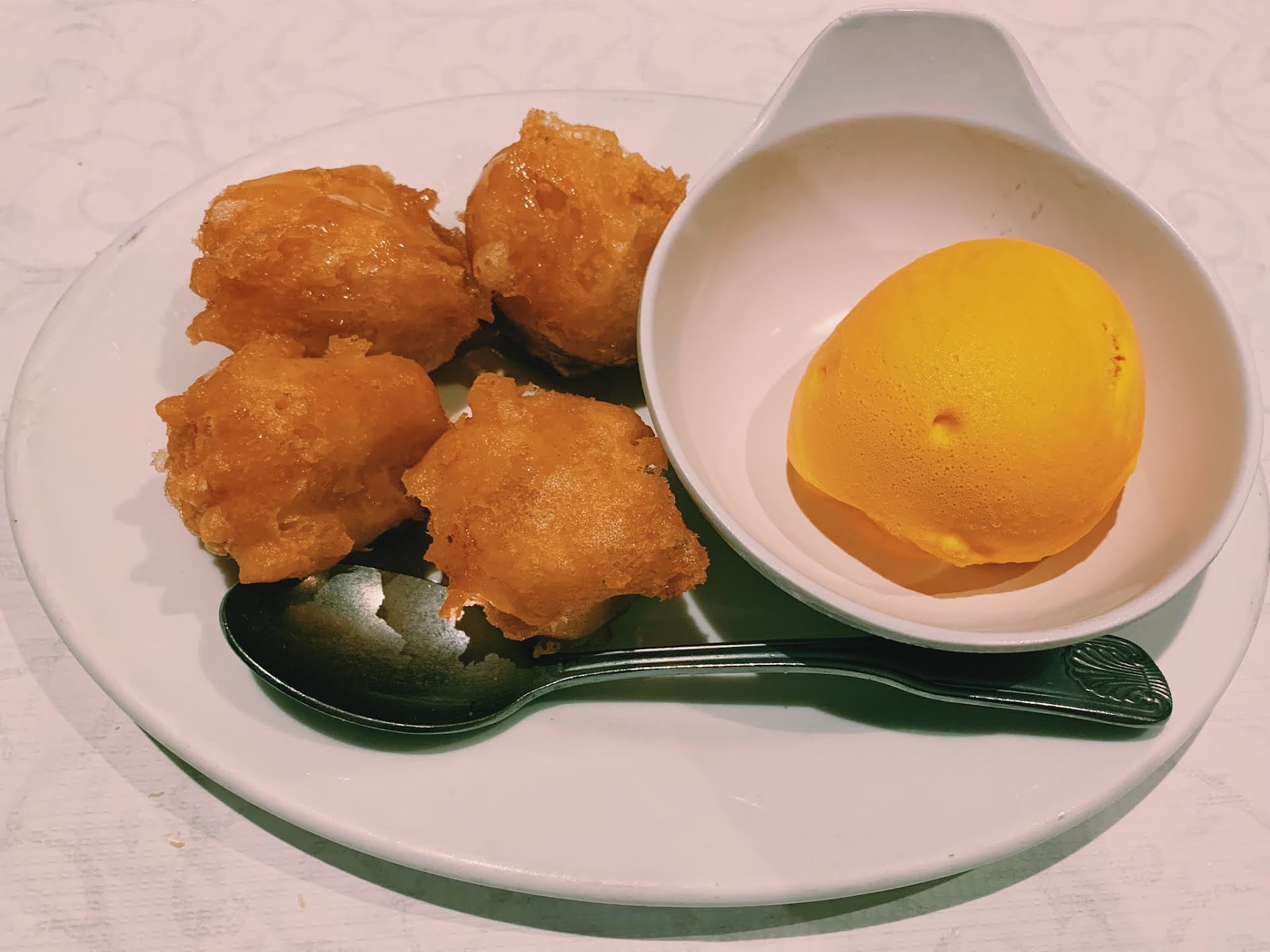 The garlic noodles were also very good. Noodles had a nice chewiness to them and the serving was also very generous. Dessert is fried bananas with 2 flavors of ice cream -...