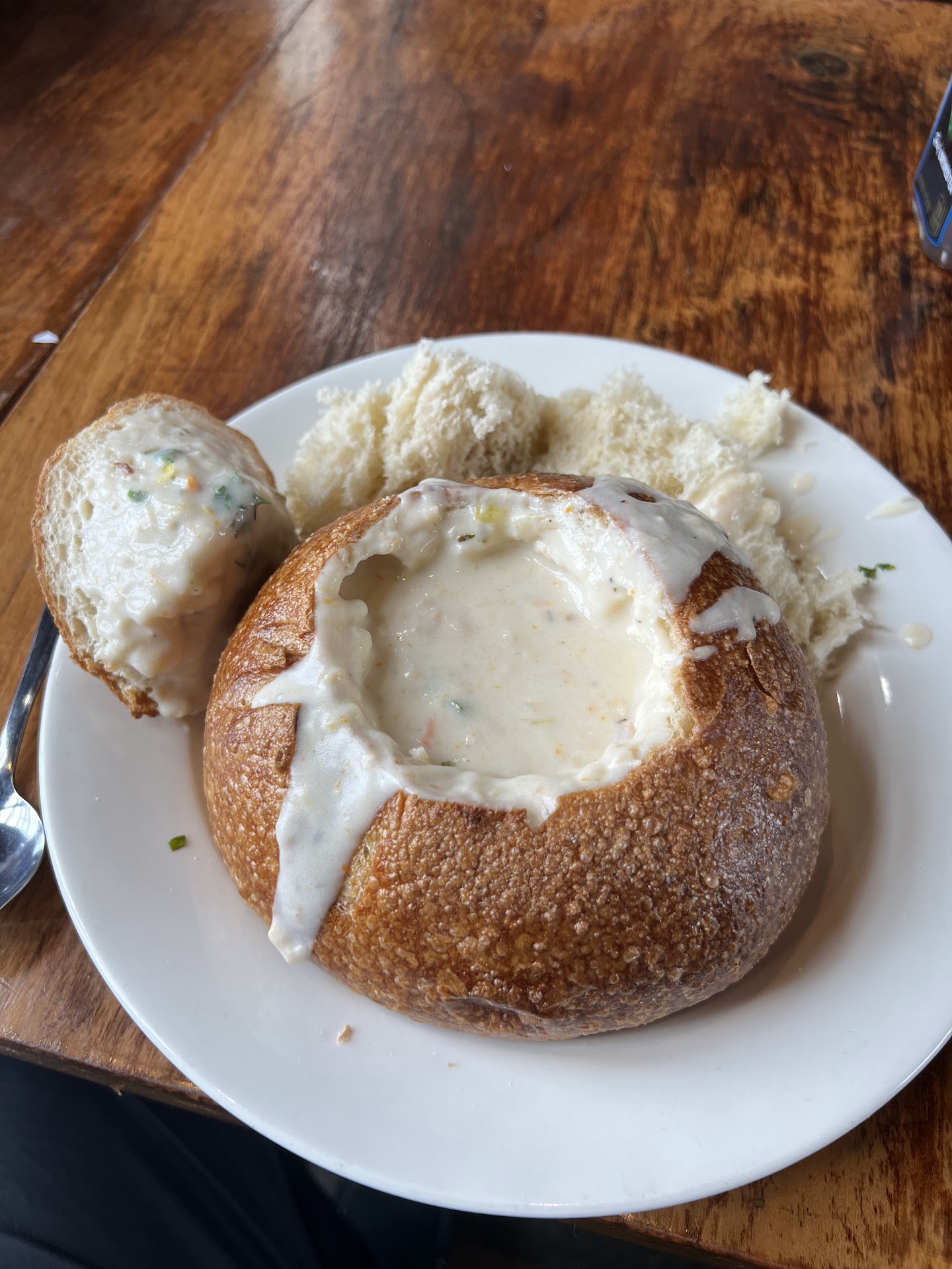 Title: Amazing Clam Chowder Bread Bowl Experience at Queen Louisiana!