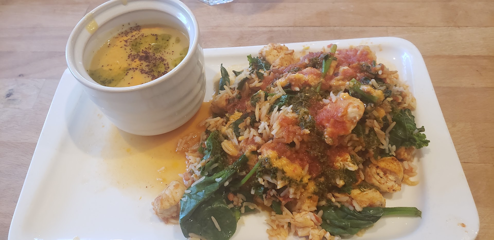 Read moreA foodies delight this is! Situated in the Bayview/Hunters point area of SF on 3rd St., this clean and unpretentious little gem of a restaurant, serves lunch and dinner from an elegant and uncomplicated menu. The decor is casual yet invites you to stay awhile and relax and the food is fantastic! The menu is limited but changes regularly and I still had a hard time choosing because everything looked so good. We ended up ordering a spinach, beet and feta salad that we shared, which was perfect because it was a generous portion. My wife ordered the Chicken Jambalaya with Kale and Berbere and I chose the Saffron Prawns with Green Beans, Almonds and Couscous. The flavors and pairings were sublime! An excellent IPA and we were content and yet the meal continues to linger in our memory. We can't wait to go back and I hope the Leg of Lamb with Fennel, Couscous, Pilaf, and Chermoula is still on the menu. The Chef is clearly a gourmet! Prices are very reasonable. Street parking is ample and...