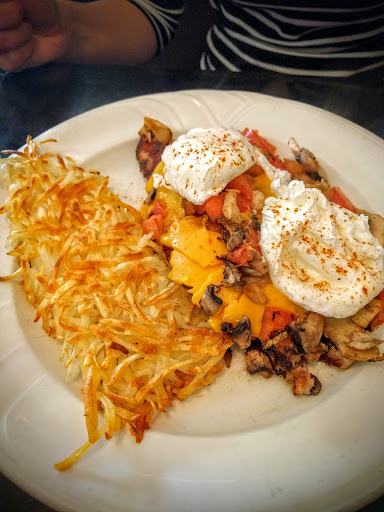 My boyfriend got the omlette with spinach and cheese. He asked for feta, but they had few options and he went with American. The omlette was a bit on the wet and drippy side, and hilariously enough, no cheese was inside the omlette. Instead, a slice of Kraft was perched on top of the soggy...