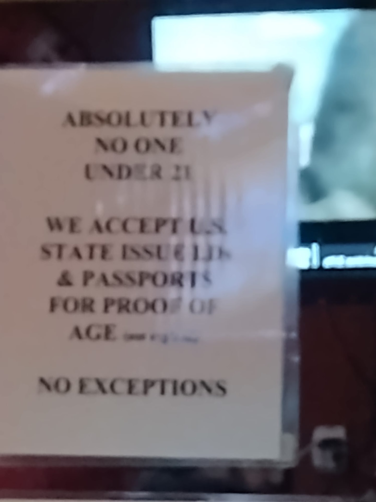 Well we spotted this bar on google after a 10 hour flight into San Fran as we needed a drink and it was before 10pm. I am 50 year old White male and my Wife is a 57 year old black woman. We were refused a drink as their requirement written on their wall said if you appear under 21 you must provide ID before being served (we had left our ID in the hotel). Some common sense should have been shown here as being over 50 with middle age spread, plenty of wrinkles and a grey beard may have given a few clues that I maybe was telling the truth of being over 21 years old!! Joke and joke of a bar! Not the best start for our first visit to a Multi racial cosmopolitan city such as San Fran!! It did cross my mind that was it about age as I’ve been to most parts of the USA for many many years and have never had such a...