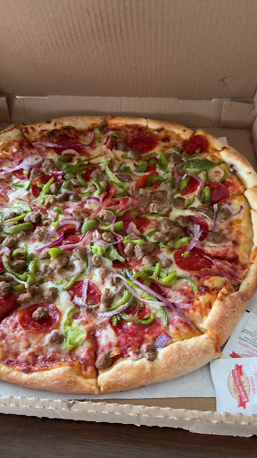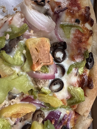 However, the pizza was extremely low quality. Probably one of the worst we had. And we have a LOT of pizza. One look, and you could see that the veggies used on the pizza were bottom of the barrel - the tomato was colorless and tasteless, and the onion still had some peel. The dough is usually a star and didn't feel like it was proofed and tasted like cardboard. The cheese was low quality and tasteless. We felt sick after eating the pizza.