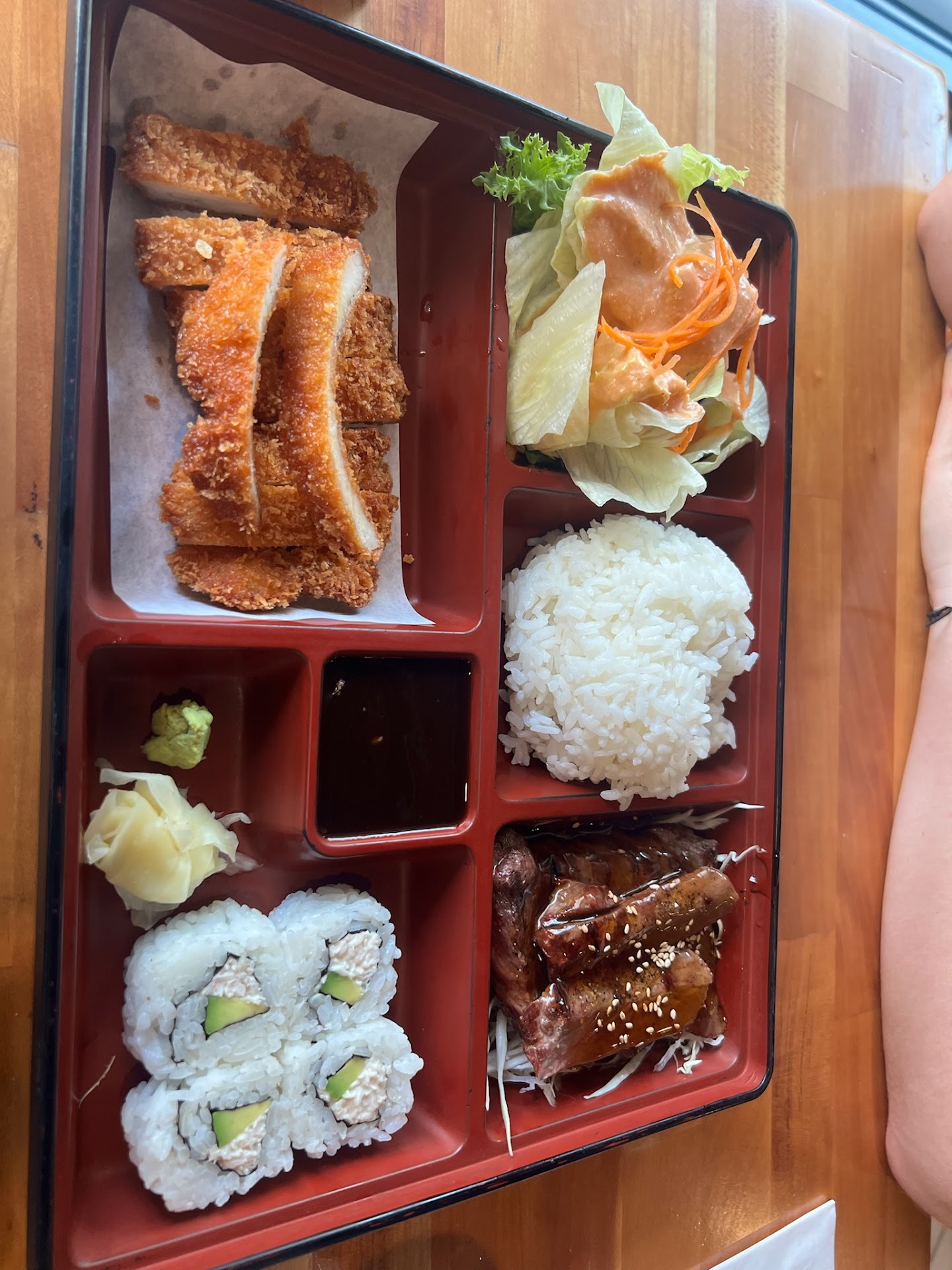 Read moreRock Japanese Cuisine - Dec 18th The ventures for a after Congee snack before dinner. Satisfying the craving with sushi and a delight. Came by this place for a lunch session, and it wasn’t bad. As you walk up to the place it’s at the corner, and the door is on the side. Came here mid-day on a Sunday at approximately 2PM and got seated pretty quickly. There was no wait so there was no issues with that and got offered a water on the get go. Ordered the bento box and it seemed to be pretty good with value for $15 dollars. Tried the Mango Spider Roll and liked the texture of the tobiko with the avocado. Thought the Mango was a little too sweet. Also had the Jay Roll and the hamachi was fresh and flavorful.