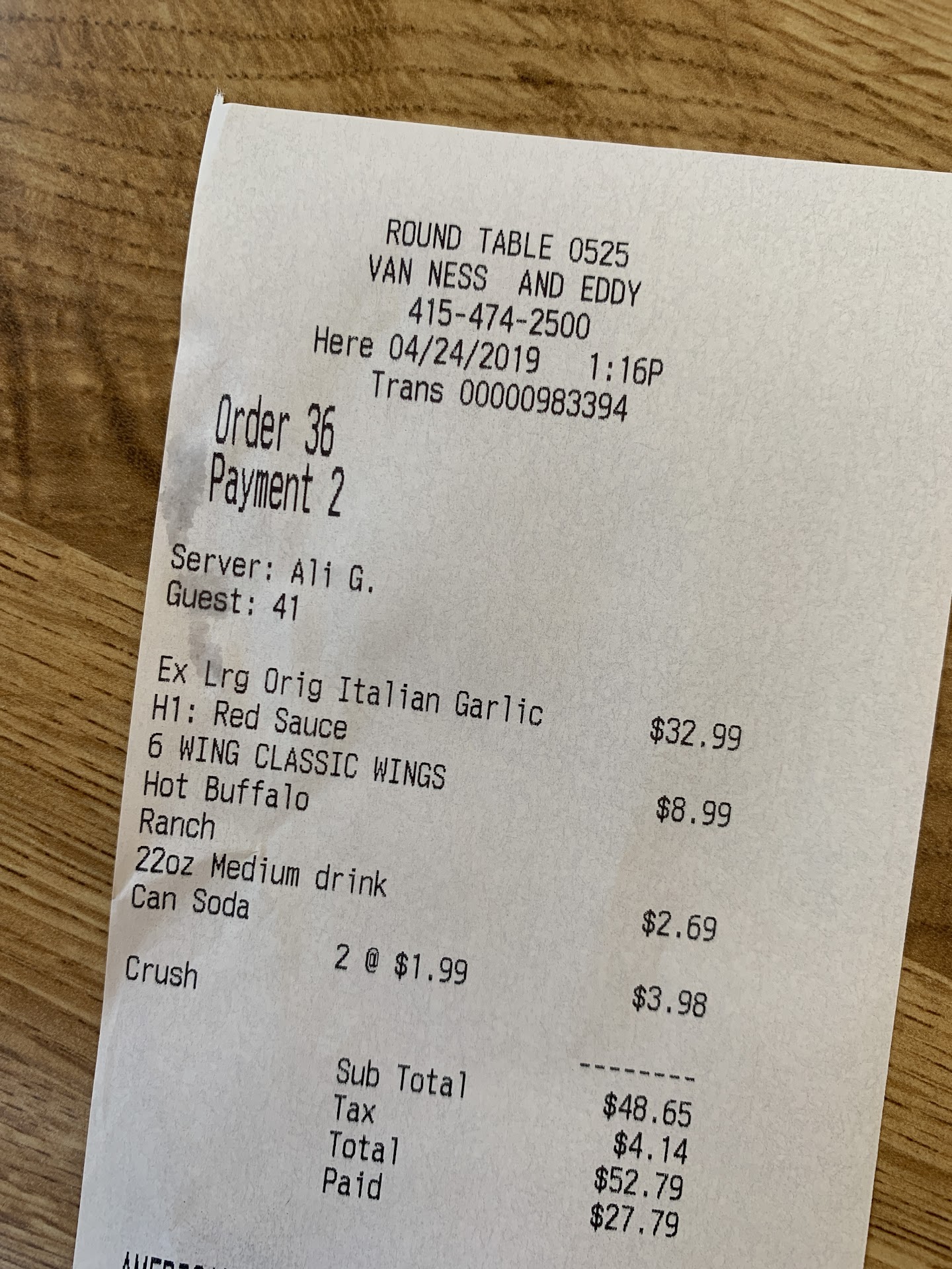 Read moreMy son and I were in town for a concert and afterward, we decided to grab a quick bite. We noticed this Round Table Pizza location open and I called 24 minutes prior to closing time. I understood that, given the late hour, I might encounter someone rushed on the phone, but instead, I was met with attitude from a snarky woman. I was told I would have to pick up the pizza in 10 minutes because they were closing, which was fine with me. We then rushed over. However, upon arriving no more than 10 minutes later, it became clear that the employee hadn't even placed my order. She seemed annoyed then fumbled with the computer, though the restaurant appeared nearly empty. She then informed me it would be another 10 minutes. I reminded her that she had initially told me to pick it up within 10 minutes, but she ignored me and instead spoke to the cook, who then rushed to the back to start making our pizza. I asked her why she had rushed me if they weren't going to make the pizza until I arrived. She responded rudely, saying, "People always call late and never pick up." At that point, I felt she was simply bothered by our "late" order and had been dismissive from the start. I asked for a refund before the cook could even begin preparing the pizza. As she processed the refund, she muttered, "I don't care," clearly demonstrating her indifference. It's a shame that our excitement for some classic Round Table pizza was crushed by such a rude and inconsiderate employee. Luckily, the Korean restaurant across the street saved the night. Great customer service and awesome food. Avoid the Round Table at this location or be prepared to encounter this...