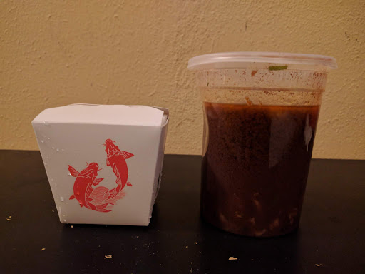 After ordering it was a 15-minute wait and I was on my way. I got two containers, a large plastic container with the soup and another small Chinese to-go container with the noodles which was a good start as it prevented the noodles from soaking up all the broth by the time I reached home. The noodles were fine (they had not clumped up) and the broth was very good. It seemed to be very close to the original as I can remember it. Overall, I was very satisfied with what I got.