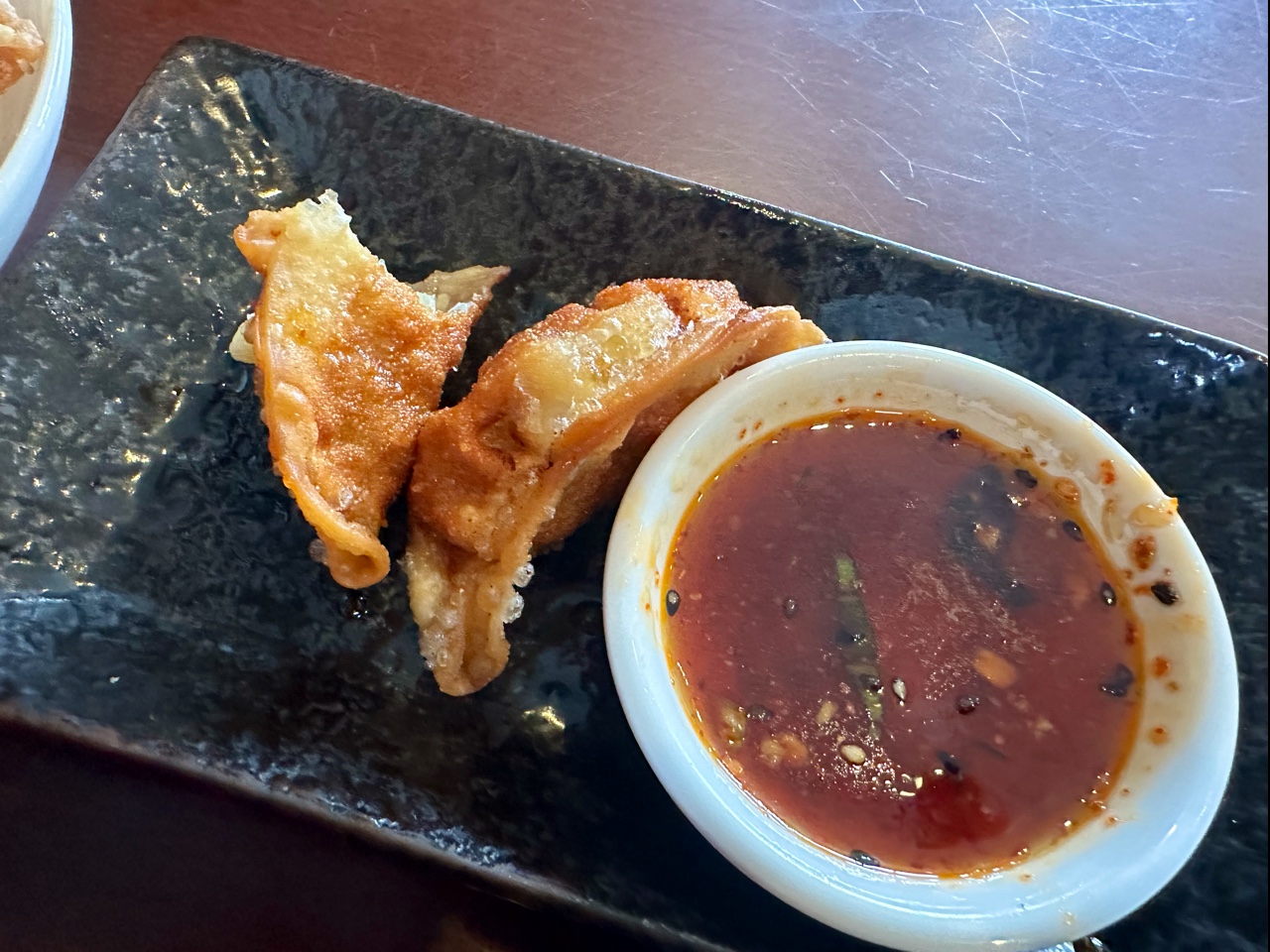I also tried the Gyoza. It was ok. The sauce was good and the cook of the gyoza skin made it crispy. I have to say, Iâm not the biggest fan of the filling though. A bit mushy for my taste.