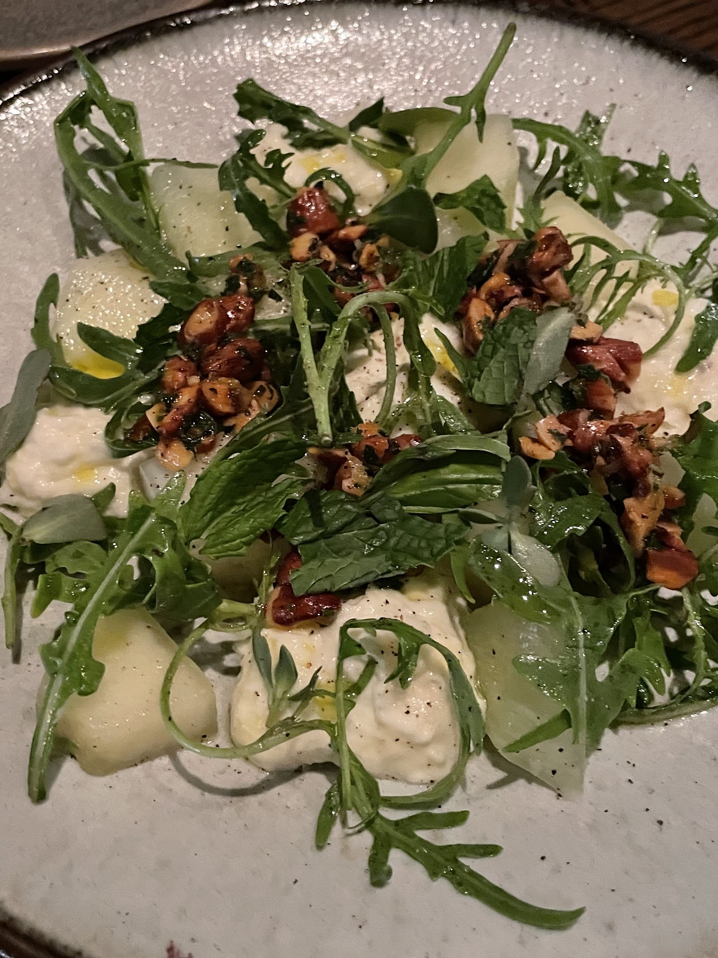 The food was simply amazing so let's jump into it. For starters we order the Burrata which has been a dish that we have tried multiple time during the trip. The Burrata was made with fresh melon, arugula and almonds toped with a delicious sauce that pulled everything together. Complex flavors came together so nicely, it was a great way to start. We also got the mixed olives which was a generous portion of olives, served slightly warm which enhanced the flavors and elevated the ingredient.