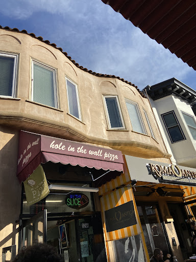 I’ve never seen a restaurant that so accurately fits the name. I was in town for a show at the palace of fine arts and needed a quick bite to eat before the show. It was an easy walk and they had probably five or six flavors sold by the slice ready to go in the window. The restaurant its self is a narrow hallway with a row of barstools along one wall. There were framed photos of Robin Williams by the cash register on the wall. This is the archetypal big city delicious pizza place. I got the chicken pesto because I can’t eat tomatoes and it was delicious. The crust was very crispy and there was a lot of chicken in every bite. My partner got two slices of pepperoni and said it was just right, just greasy enough for her tastes but not so greasy it dripped past her wrist. If I ever find myself in the area again and crave pizza I’d definitely go back....