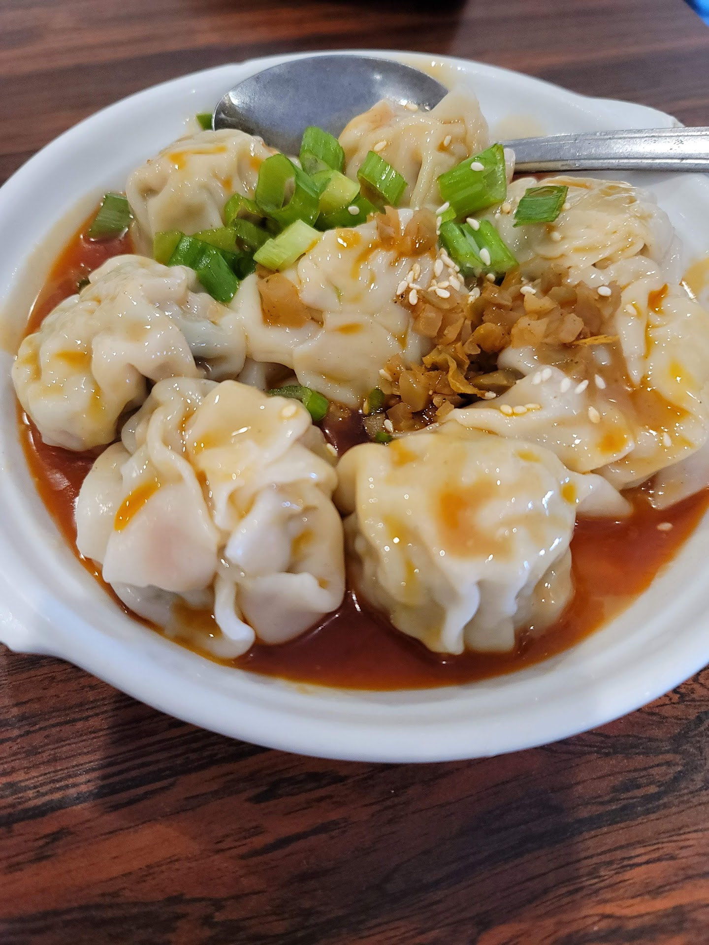Read moreWe ate here on Friday, New Years Eve. Ever since Ton Kiang closed we have been searching for another place to eat Dim Sum/dumplings in the City. We saw this place on a list somewhere and decided to try it out. We ordered the spicy dumplings, spicy shrimp and chive dumplings, pea shoots in garlic sauce, chive pancake and pot stickers. We asked the nice waiter if we were missing anything good and he suggested the Shanghai dumplings and the steamed pork buns, which we added. Let me tell you, everything was AMAZING! The spicy dumplings came with different sauces, one with peanut and the other a thinner soy based sauce. Both were great, not super spicy but really good! The Shanghai dumplings were wonderful, savory and a little bit sweet. The potstickers and pork buns were really flavorful and good. The pea shoots were delicious. The chive pancake, while very good, was the weakest part of the meal (though was still devoured). Other than a light vinegar sauce that was brought out to the table nothing that wasn’t sauced in the kitchen came with any, which was sort of lacking. But since all of the food was delicious and cooked perfectly (not dry) I didn’t miss it in the moment.