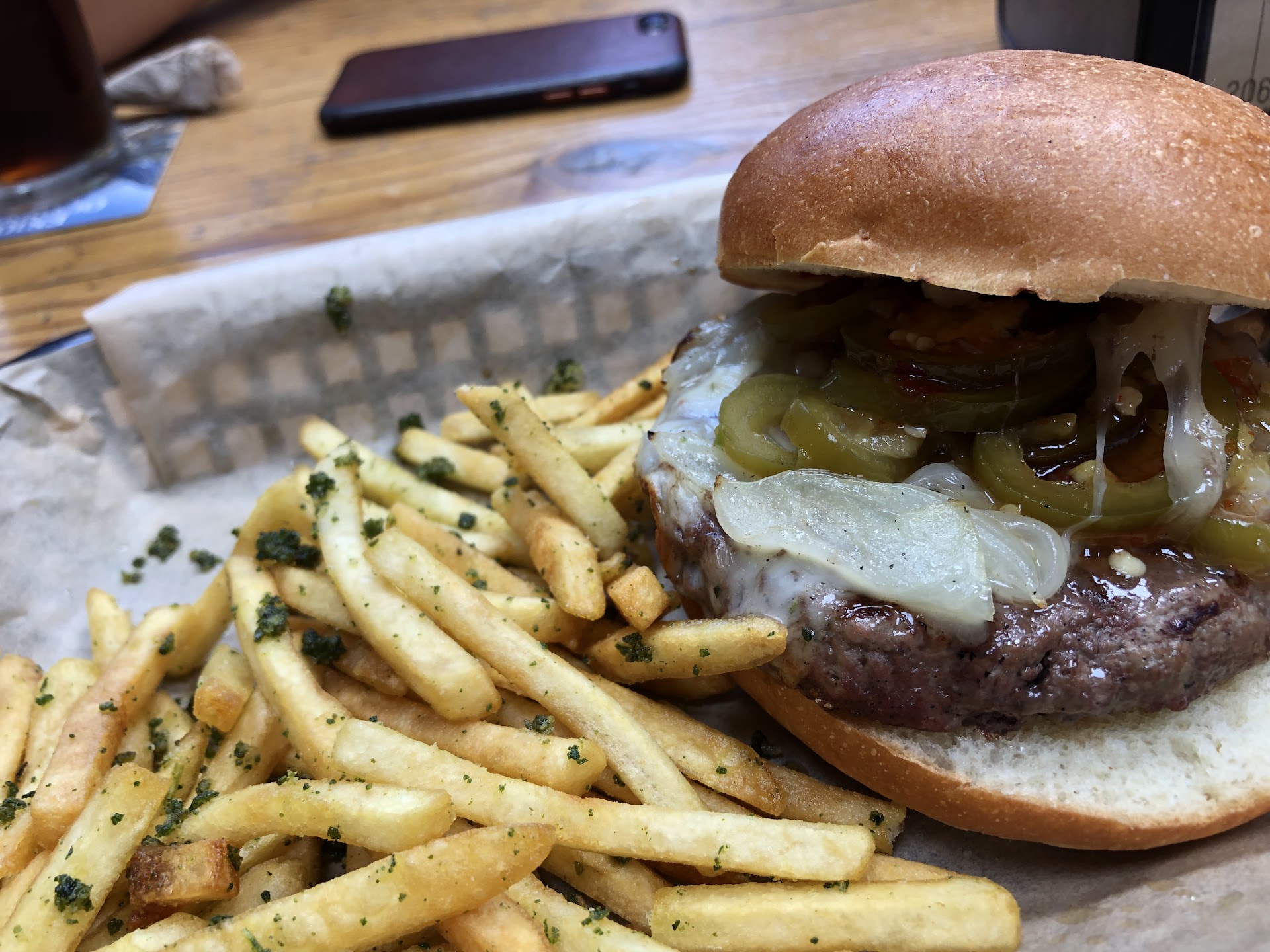 Food at SPBC seemed to be more of an afterthought. We split a kale Caesar salad, which I liked more than my friend. I tasted his traditional burger and preferred it to my black bean burger. I'm not a big French fry aficionado, but I thought that the thin cut fries at SPBC, with a healthy dose of added ketchup, were pretty tasty. My friend tried the root beer float for dessert. He enjoyed this trip down memory lane but I, mindful of calories, decided to pass on dessert.