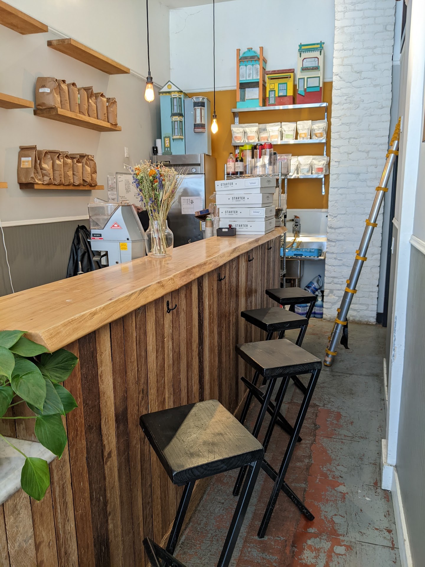 Read moreCute narrow little coffee shop with a fun ambience. Lots of coffee options and a few other drink options. They also have snacks like fancy pastries/breads, including a fabulous looking marshmallow bread. My oat chai latte was unfortunately a bit disappointing compared to those I've had elsewhere. This place has a really nice interior with high ceilings, what looks like reclaimed wood and bricks, and industrial style flooring. There's minimal seating: only a few stools by the window, plus a few more stools near the back where the drinks are being prepared, so this isn't a great place to meet a friend or hang out for a while indoors. Since the place is so small, everyone would likely be able to overhear your conversation. There is some seating outdoors in a small fenced...