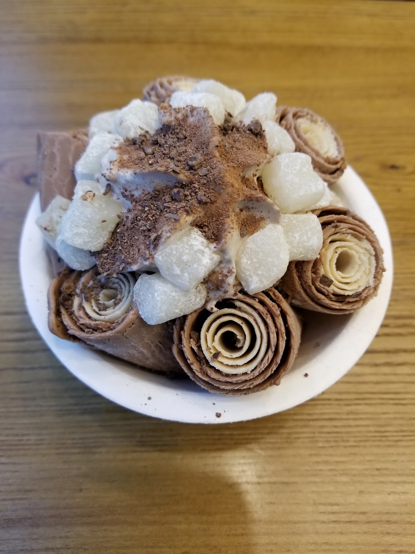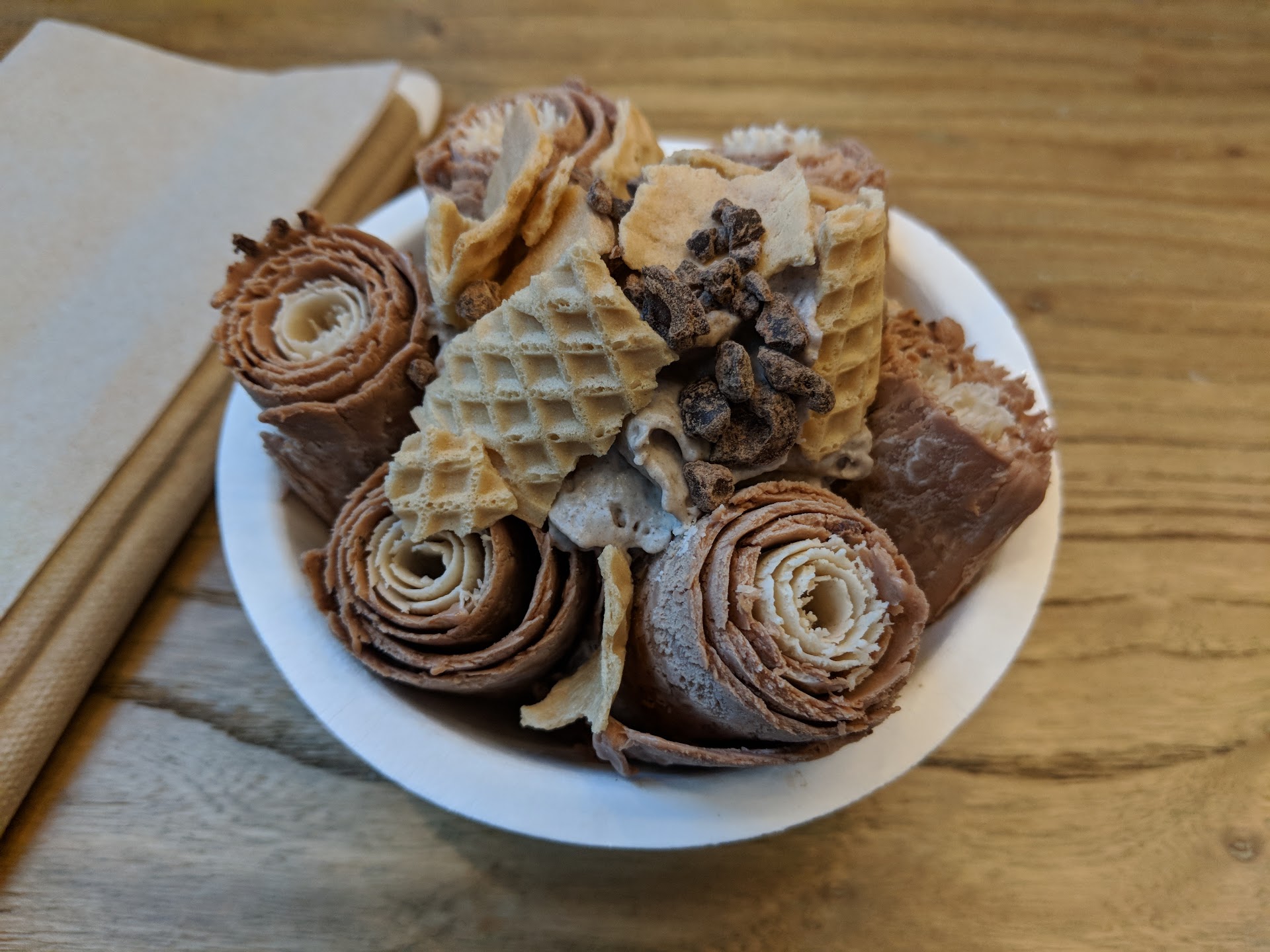 Rolled ice cream - not just a fad but actually really delicious & I love the denser, harder texture! (Steep Creamery is also much better than NY's 10 Below, much better flavors!)