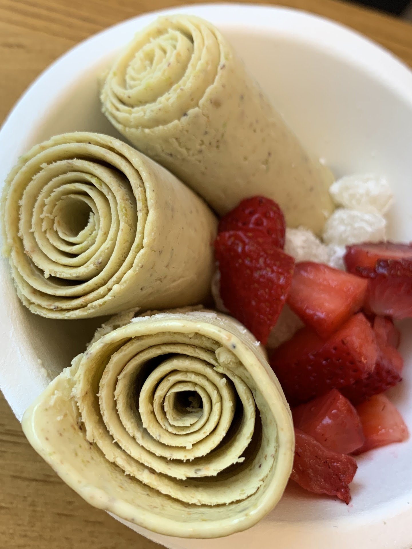 Read moreI came here with my bf after dinner and there was no line at all (and only a few people sitting at the tables), so the whole experience was fast and efficient. I ordered the matcha-polis rolled ice cream ("matcha sesame topped with matcha boba and strawberries") and he ordered the coconut creme ice cream roll ("smooth coconut ice cream topped with fresh fruits and almond flakes", which also happens to be vegan). Both were very tasty and presented so beautifully, though admittedly I liked his order better since it seemed creamier. Overall, had a great experience and this location is easy to get to, so I'm sure I'll be back soon. (Something to note with rolled ice cream though is that it's harder than "typical" ice cream, so that's just something to be aware of if you've never...