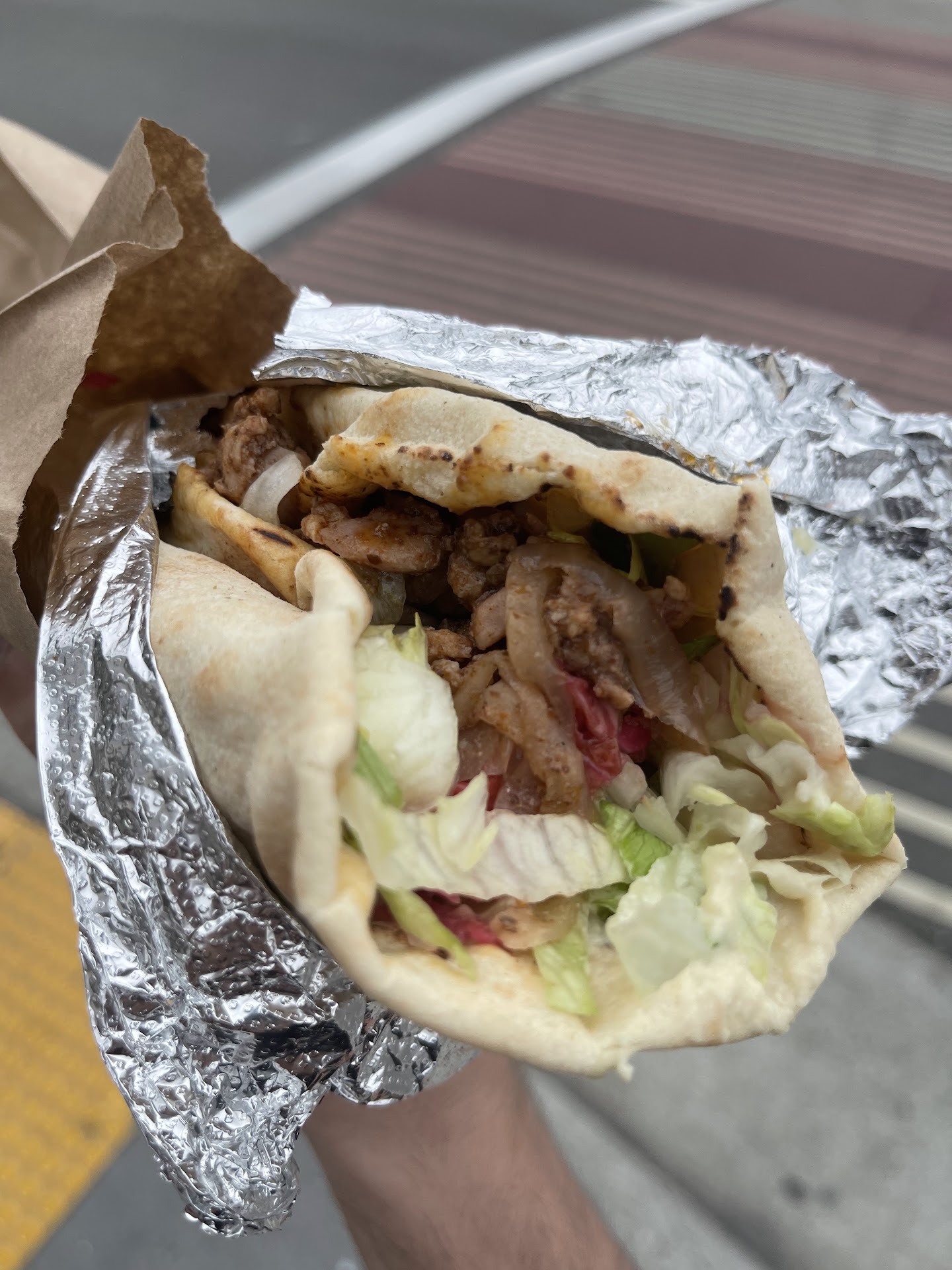 ... and the dude working the counter was really great, suggesting that we try a little of this and that. We walked away with a powdery little rainbow of Turkish delight and an extra serving of falafel for...
