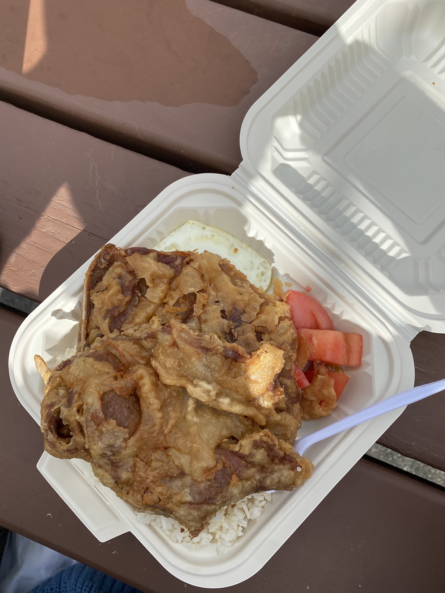 I've only been here once, but I definitely plan to try more of their menu. I got the Baby Bangus meal which comes with a fried egg, tomato wedges, and garlic rice. $6.25. I also added popcorn chicken for $4.25 since they ran out of lumpia by the time I got there at 3PM, which was pretty close to closing.