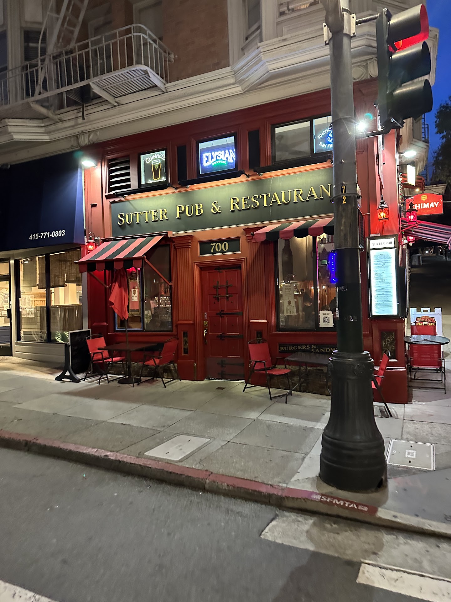 Read moreWe walked by and decided to try the Sutter Pub & Restaurant on a Monday evening. The pub was about half full when we arrived around 6:30pm and stayed that way for the duration of our stay of about two and a half hours.
