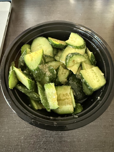 I enjoyed a warm bowl of shrimp wonton soup, which they made spicy on my request, and my partner, sweating, relished his griddled bean curd pot, claiming, “Finally, someone who respects spice.” We also ordered the bean jelly appetizer, which was a close replica of the liangpi from my childhood summers in Chengdu. Around us, two middle-aged college men were plotting their next steps in life over bowls of peanut noodles, leaning in to make sure they really understood each other. Two parents and their adult son put aside their expectations of each other and shared plates of garlic fried string beans and grilled fish, collecting the bones on a separate plate. Six USF students each got the lunch special, so there were copious bowls on their table. They were laughing gayly. The bowls and plates here were all porcelain or metal, so I didn’t have to worry about microplastics leaching into my food.