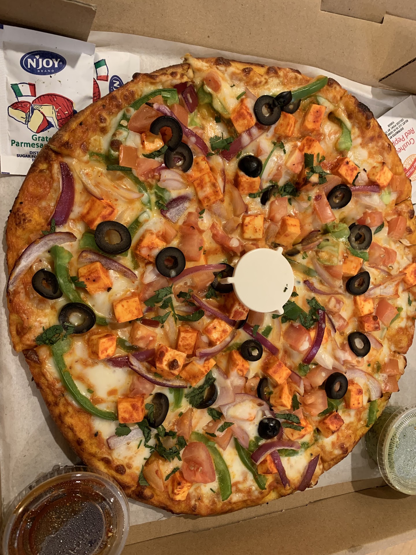 I also noticed they have a pizza oven. And whats better than an Indian pizza, an Indian pizza with paneer. So I order the spicy paneer pizza.