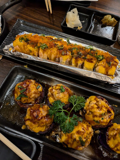 The sushi rolls and appetizers were fantastic! We started with the baked eggplant appetizer topped with shrimp—absolutely delicious—and the wok-tossed edamame with garlic, which was packed with flavor.