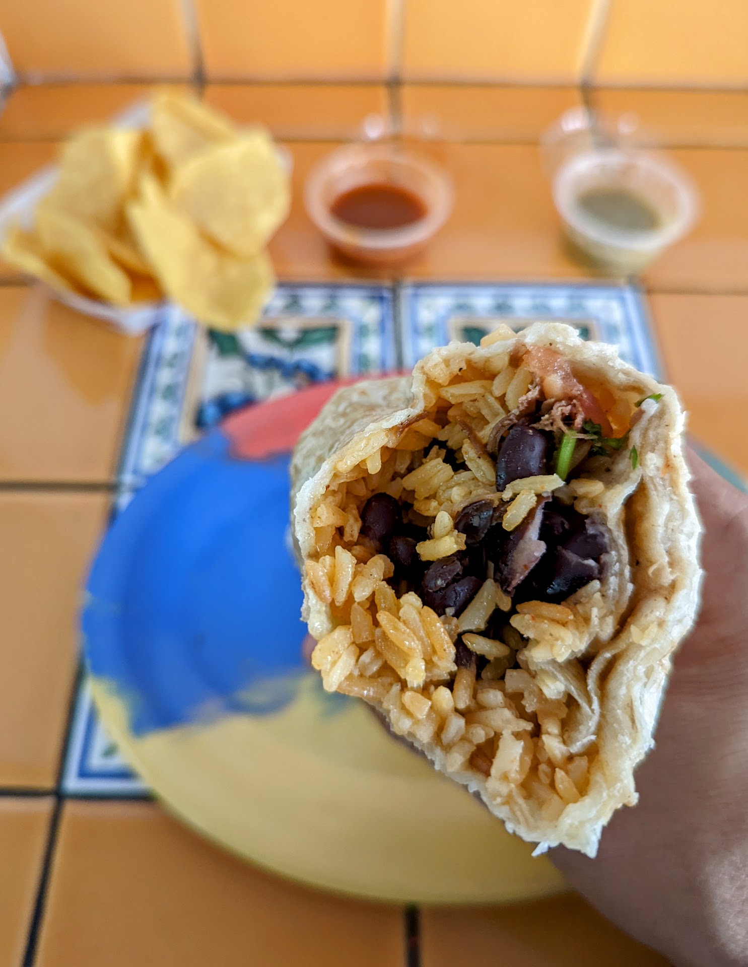 Eight bucks and change for a super burrito with gauc is cheap for this area. I can't get enough of the chimichanga with carnitas. You could make two meals of these items, though I usually just enjoy them too much and pig out. The available hot sauce in the fridge is nice and smoky, this really elevates these dishes. If you don't want to take some home, they have smaller burritos, and other, cheaper options. I've even enjoyed some of my daughter's plain burrito, which is a huge, meatless option for a mere five bucks. Refried beans are quite tasty, and liked wife's carne asada platter, although I do prefer carnitas here . I find the grilled meats a little dry. The barbacoa and chilli verde are interesting, sort of stewed meat with a little spice. Haven't tried the burgers, but fries are really good. All in all, very good for what it is. This isn't fine dining. I'm comparing to other burrito joints. I have a weakness for chimichangas, and just think the value here can't be beat. Early lunch time often crowded with work crews, as the place is small. To go you can probably still get in and out fairly quickly. Dinner usually plenty of seating. Right by the entrance to the Stockton tunnel, I guess it's...