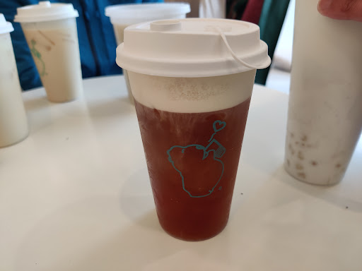 I ordered a Black Osmanthus tea from the Cheese Foam section and my significant other got a Coconut Milk with Pudding from the non caffeinated section. When I ordered the black Osmanthus tea, she asked me if I wanted any toppings. I said no, and she responded, 'no cheese foam either?', and I was really confused because ordering from the cheese foam section, why would the cheese foam not be assumed? Disregarding this though, the tea had a slight aftertaste that reminded me of Splenda. I have had Osmanthus drinks before, and I don't think this flavor is from the flower. She had told me that the Osmanthus would be there in the form of jelly, and there was no jelly either. The coconut milk with pudding was also weird. The coconut milk tasted very strongly of coconut which was nice, but we couldn't tell what the jelly was until he finished drinking all the liquid. There were two default 'toppings' in there that the staff didn't mention, one was the advertised jelly that tasted just like the drink, and one was a firmer thing that was kind of crispy. Almost like eating the palm fruit that they put in Vietnamese drinks. All together though it was not very satisfying (and very overpriced for coconut milk with odd toppings).