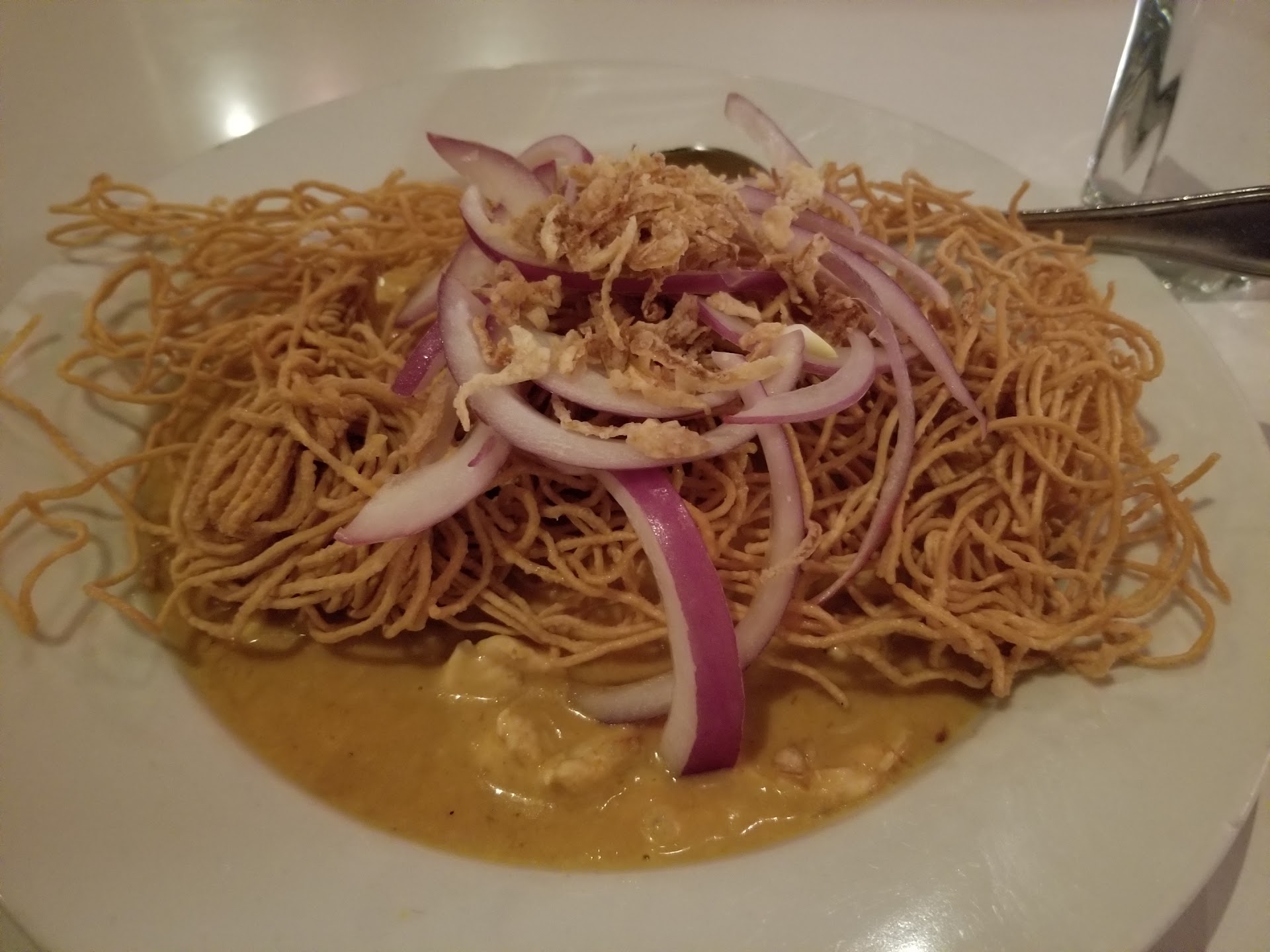 I ordered chicken panang curry and jasmine rice and Thai iced tea. Using Door Dash there is no way to make special requests especially in regards to heat of food. Your manager or restaurant owner needs to fix this on Door Dash app particularly. Also there were different prices for each app, from Uber Eats, GrubHub and Door Dash. 🤔. Whoever filled the order for me did NOT include silverware 🍴 🥄 napkins nor chopsticks as requested so it is difficult to eat curry and rice at work without silverware!!!