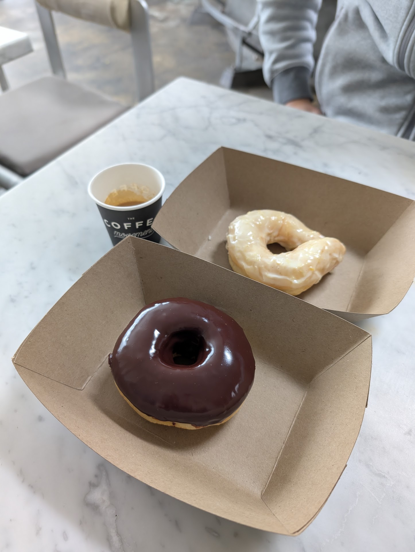 The donuts are great, super pillowy, warm and the glaze is the perfect amount of sweetness. The soft serve is equally excellent, full of buttery, toffee and coffee notes. Their coffee brewed to the same standard as their other locations.