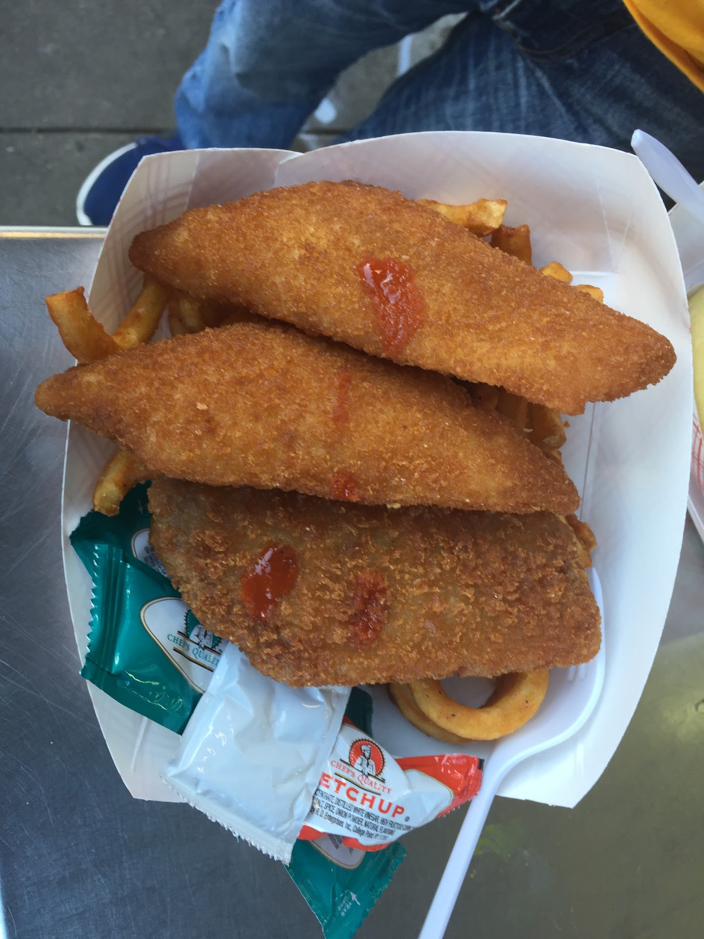 We got the crab sandwich which was a creamy sauce of crab and Mayo in a hotdog bun - really hit the spot, especially when we added some hot sauce. Also got the fish and chips - I think for the price we should have got more fish and chips- but taste wise it was ok. The fish fillet was really thin.