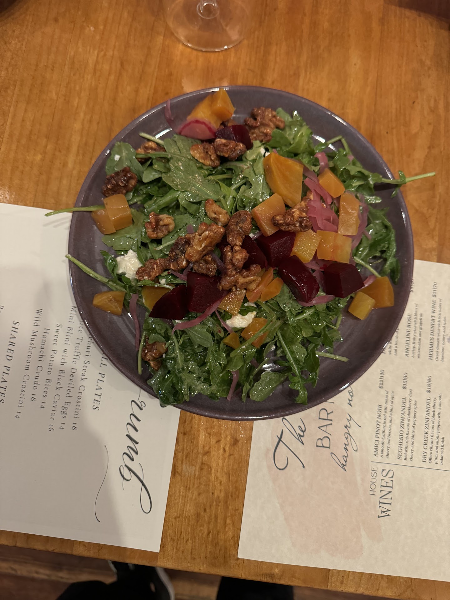 The highlight of the evening was undoubtedly the Truffle Hamachi Crudo—absolutely the best I've ever tasted! It was beautifully presented and bursting with flavor. We also ordered the beet arugula salad, which was nothing short of a masterpiece; the combination of textures and flavors was simply top-notch.