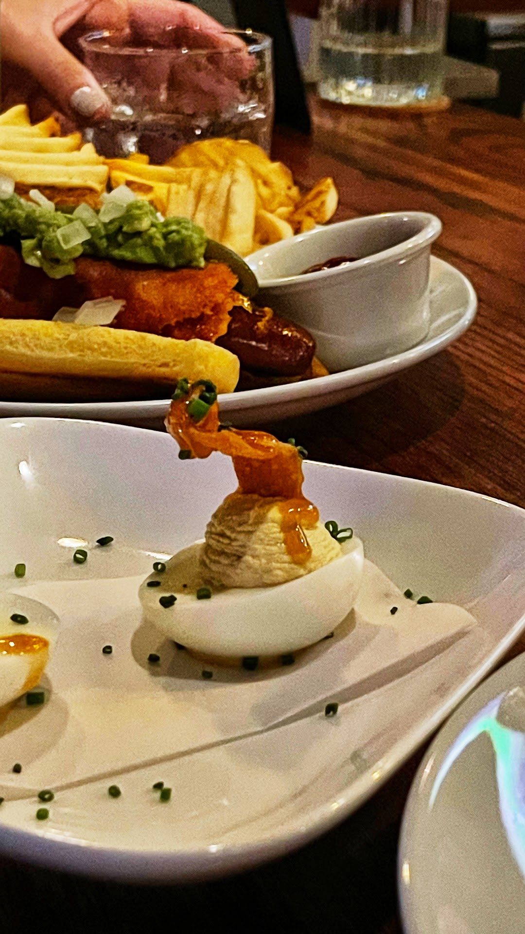 Read moreWe are from Wisconsin so I was STOKED to try this place. We had the French Onion Mac and Cheese (7/10 - could use more complex cheese sauce to balance the onion) and Crab Rangoon Deviled Eggs (10/10 - could eat a whole plate). The Mezcal Paloma was fantastic.