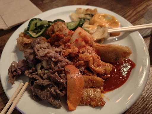 Good: The food is all amazing - loved the korean dishes like the gimbap and the american ones like the tater tots and the tofu stews It's super easy to share - the kimchi mushroom dish was harder to share but it was quite the unique dish The owner came and hung out with us for a bit in the middle too and then gave me birthday shots, which was so much fun! The live DJ was super fun