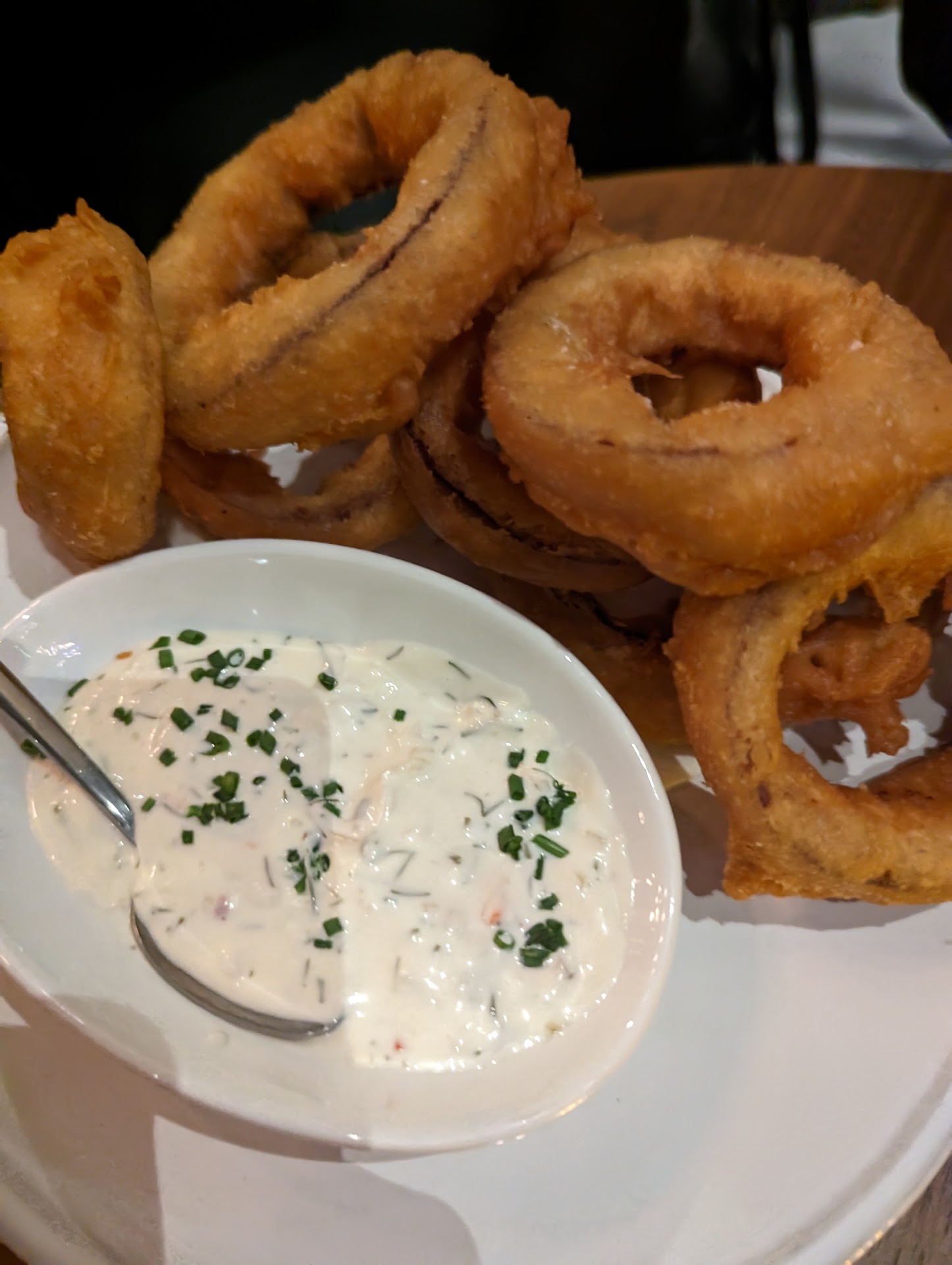 My friend and I ordered a salad, zuccini fries, and trout dip to share for a kinda light bite before a show. All were pretty tasty, and service was friendly and efficient. Four stars for that.