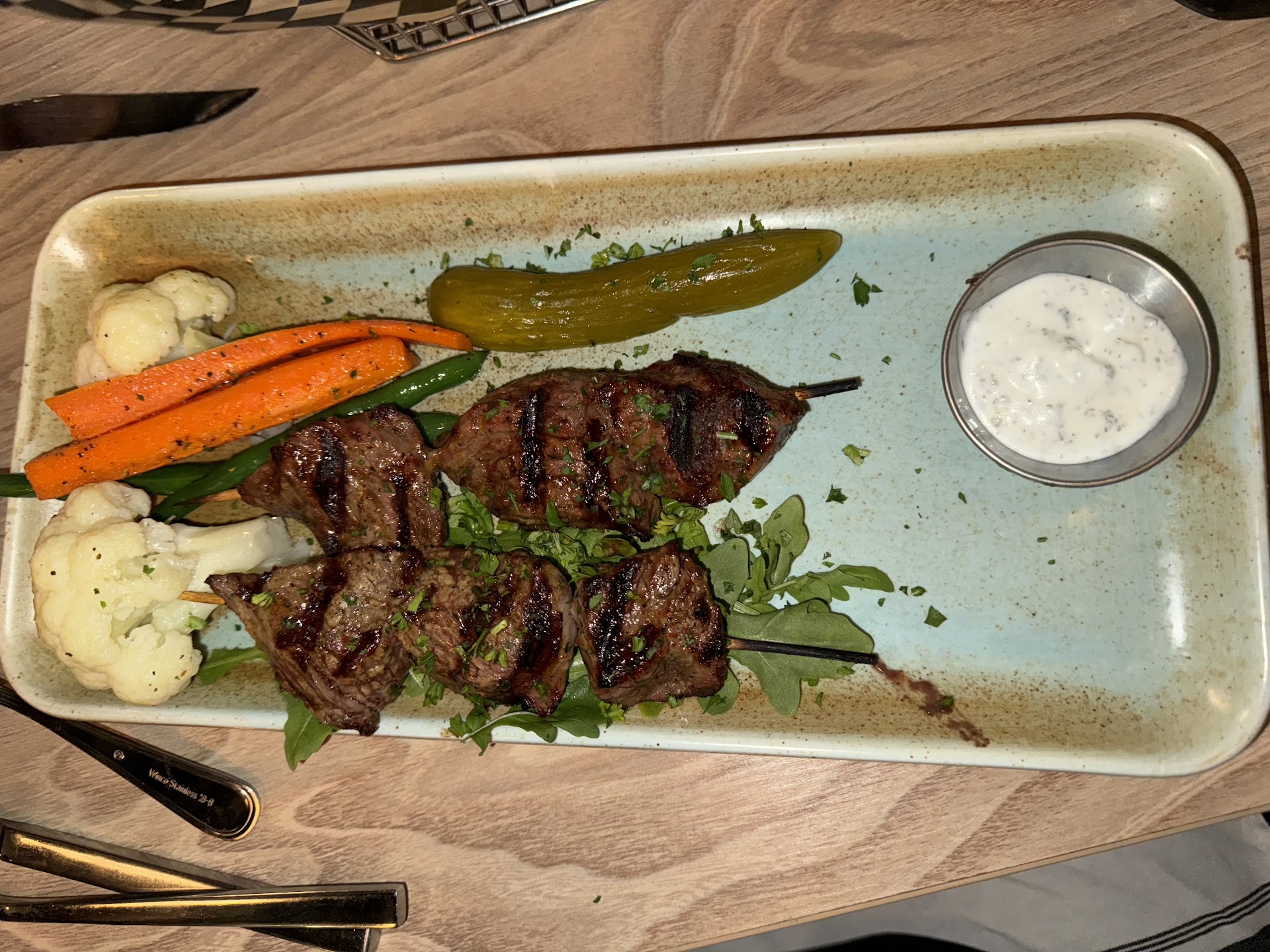 It took another 20 minutes for our other two dishes to come out (Chicken Souvlaki and Steak Souvlaki). The staff did come by and apologize a few times about our food taking so long. They ensured us we were not forgotten about and that they were just so busy on this night.