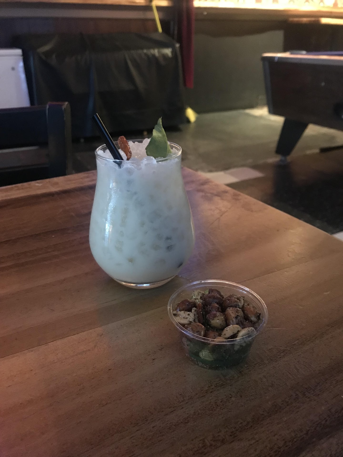 I got the Peanut Envy, which was served with a small snack of peanuts on the side. The drink was tasty, but I was expecting a bit more of a punch given the bourbon, sherry, lime leaf, lemongrass, peanut, lime and chili. It was refreshing and easily drinkable, but didn't have much heat or strong flavors, so I would try a different drink on their menu next time. The salted peanut snack was a nice addition, although it also could've used a bit more seasoning